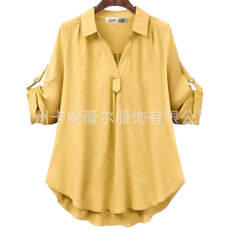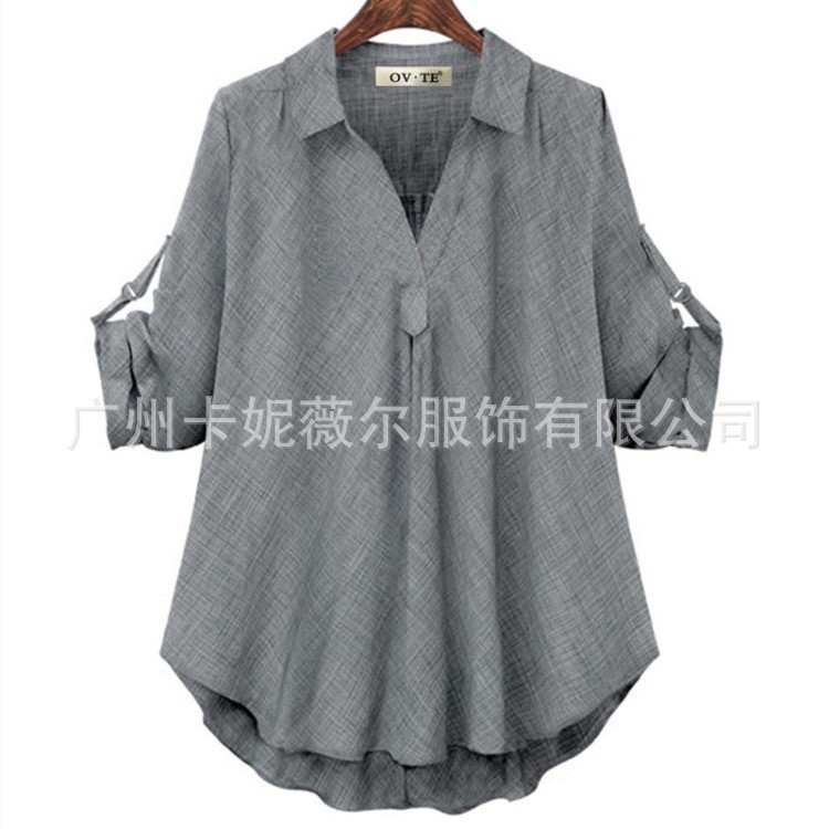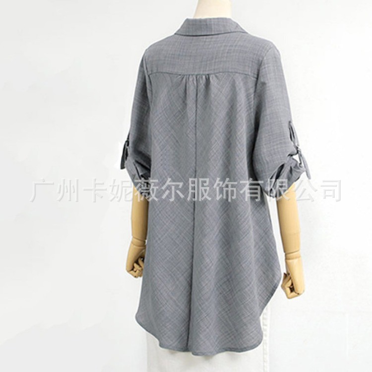 아마존 위시2025 유럽 및 미국 봄/가을 신상 여성 패션 대형 사이즈 슬리밍 중간 길이 셔츠