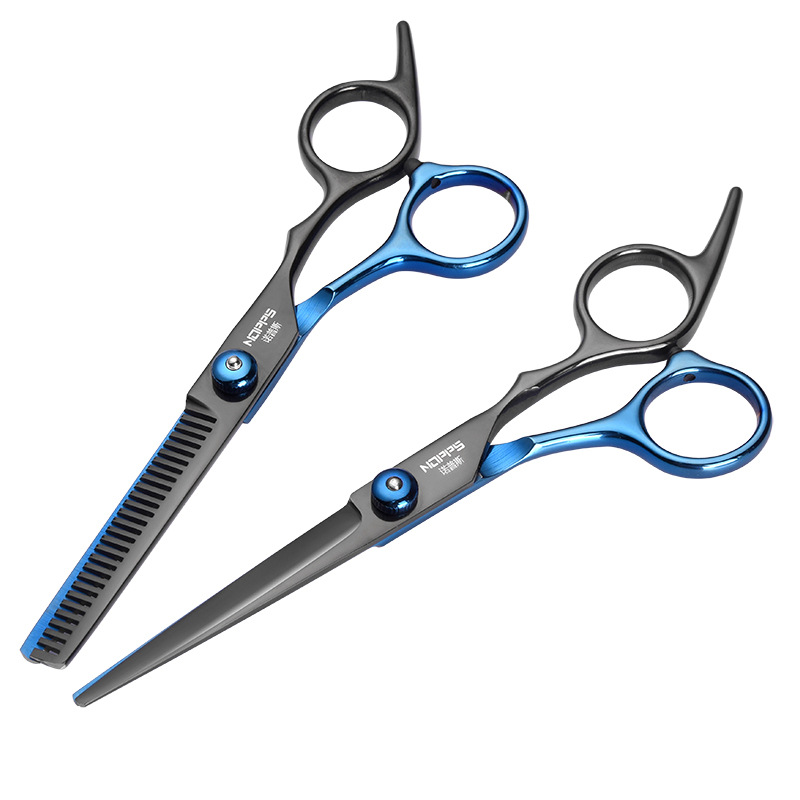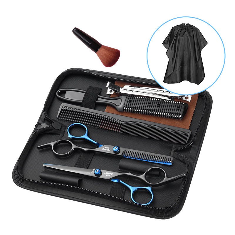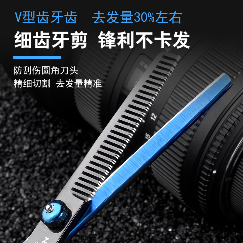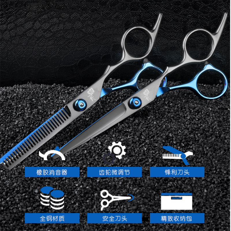 검정과 파랑 전문 이발 미용사 가위 앞머리 아티팩트 플랫 치아 가위 얇은 세트 도구 헤어 가위