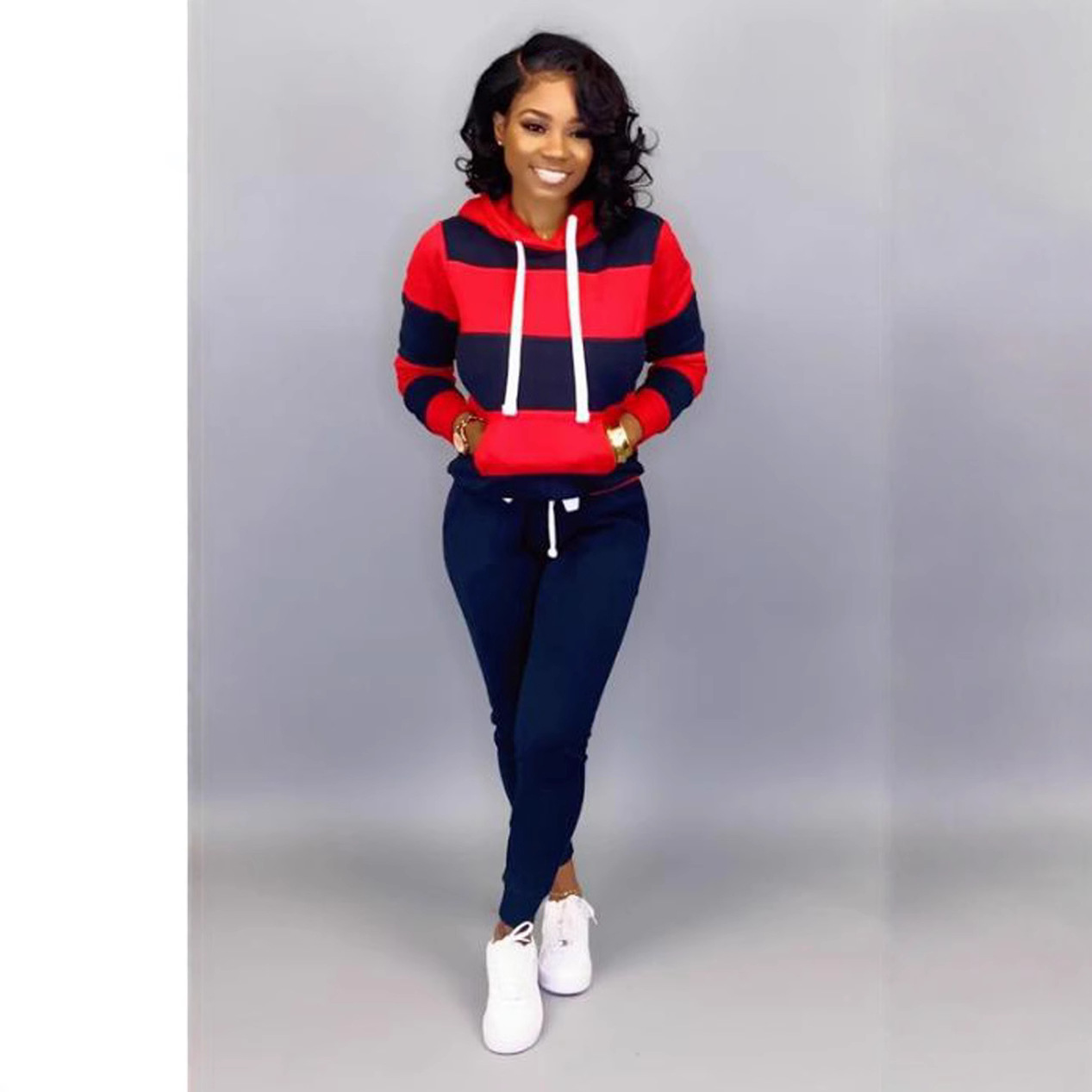 此款是卫衣面料有弹性,实拍模特胸围92,腰围68,臀围100,穿S码。