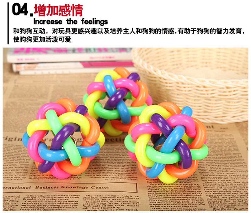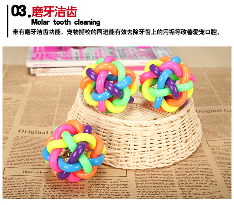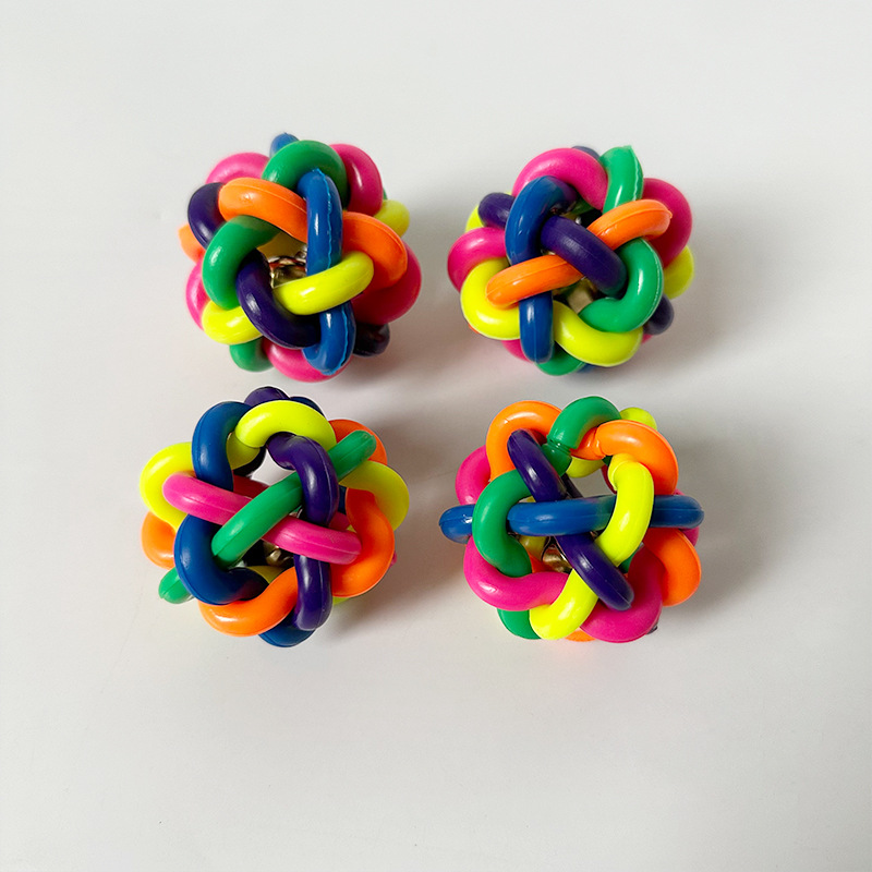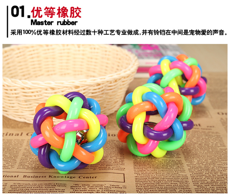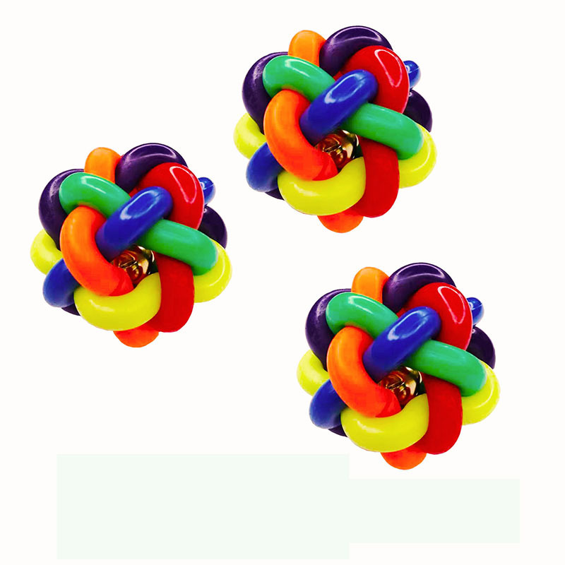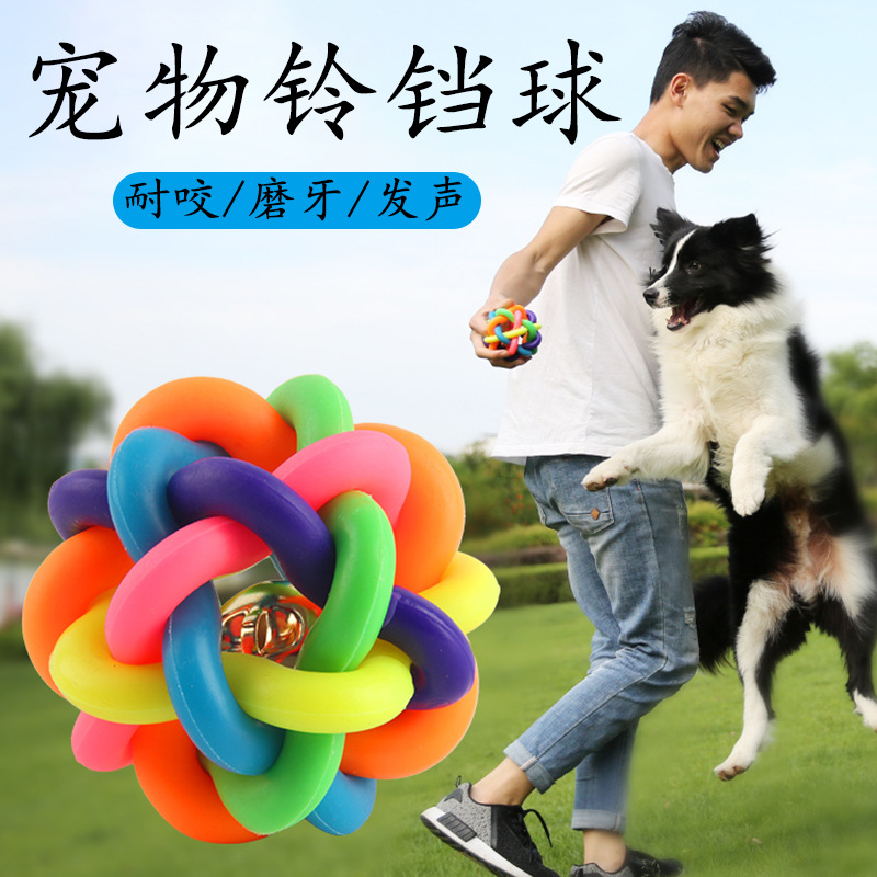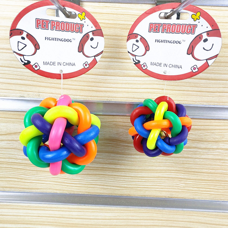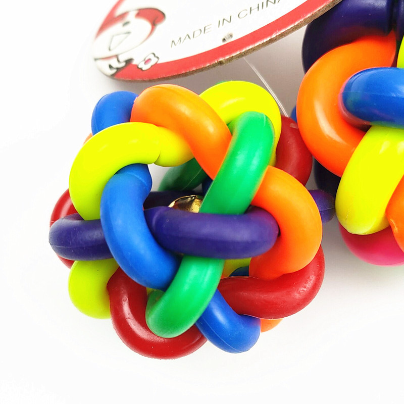 개와 고양이를 위한 만능 애완동물 장난감, 다채로운 벨볼, 이갈이 방지, 내구성 있는 고무 뜨개질 공, 애완동물 용품