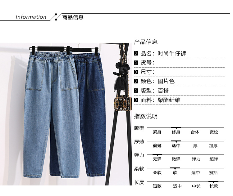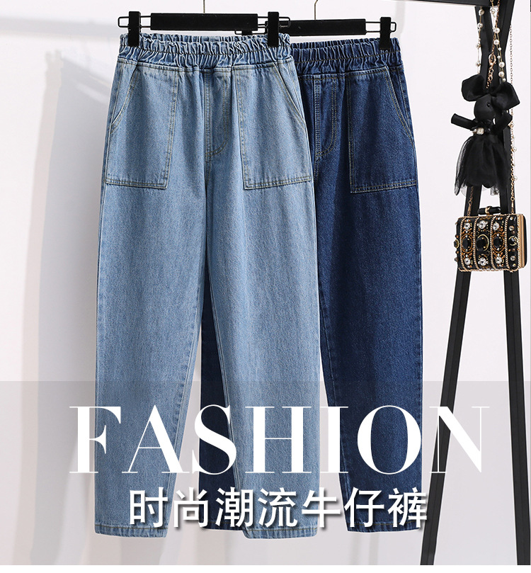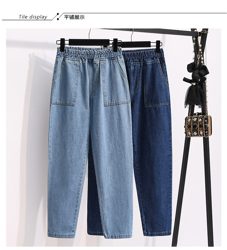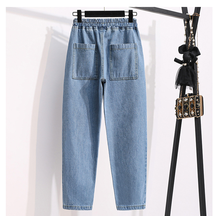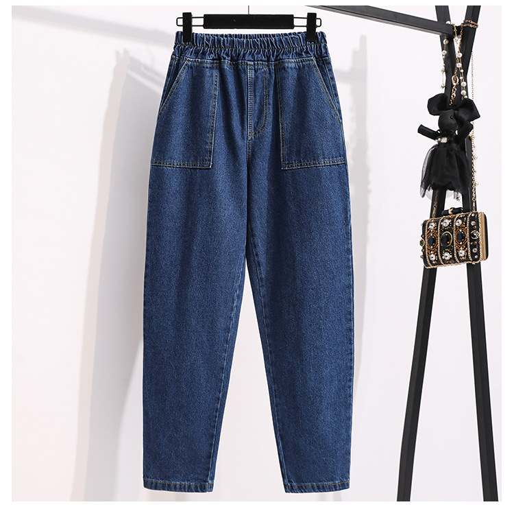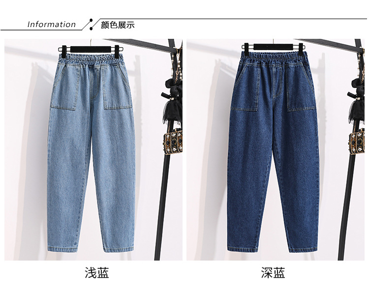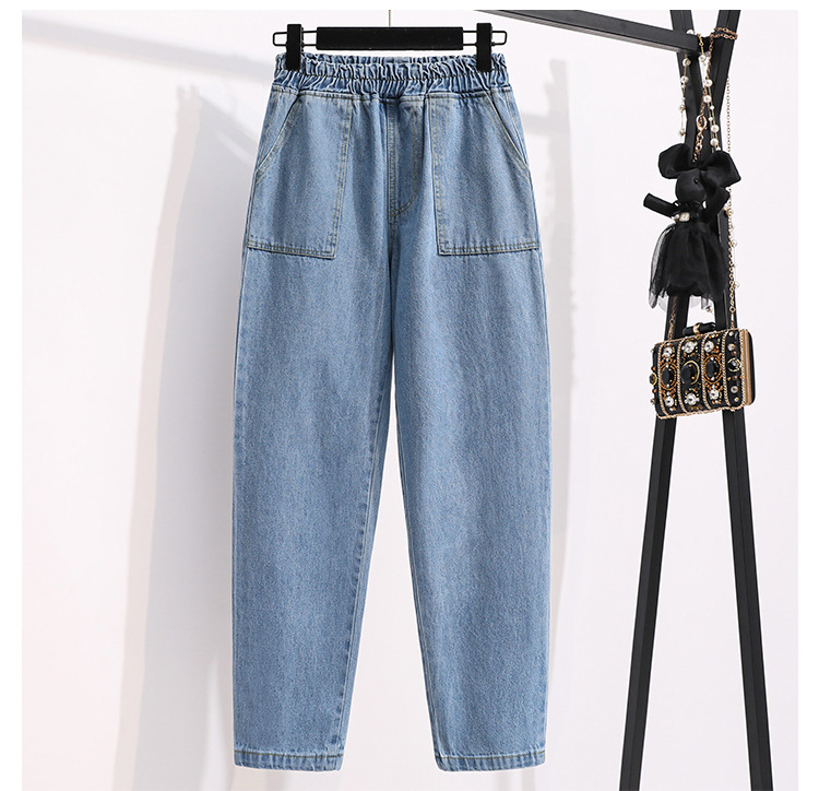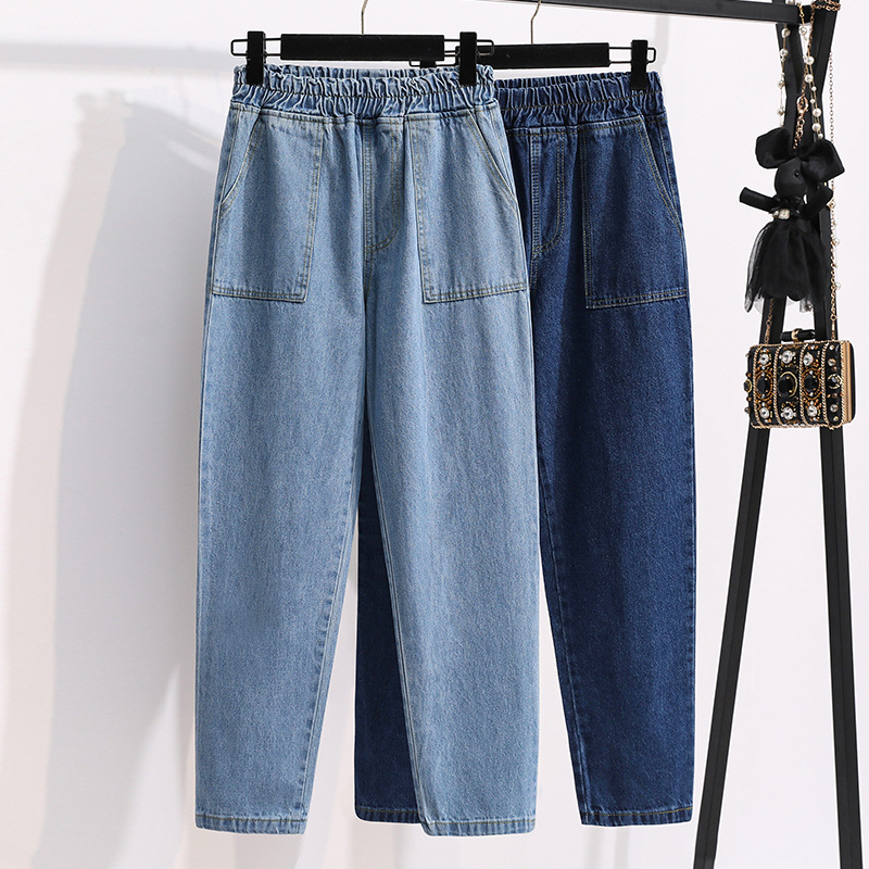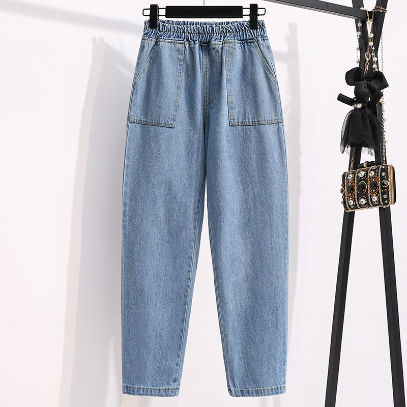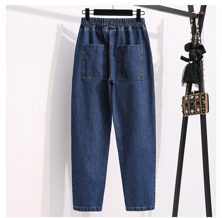 통통녀 플러스 사이즈 바지 느슨한 봄 신상품 데님 당근 바지 슬림 봐 하이 웨이스트 모든 매치 할란 바지 여성 바지