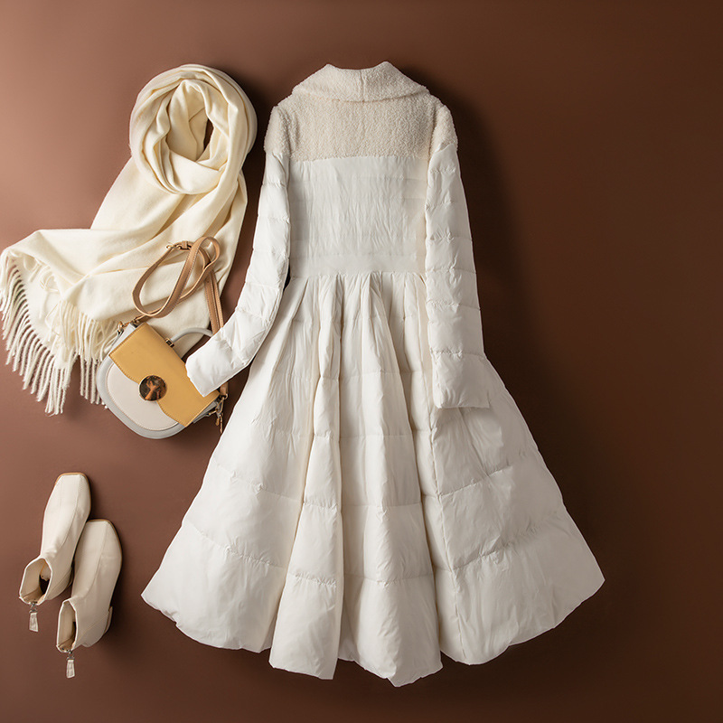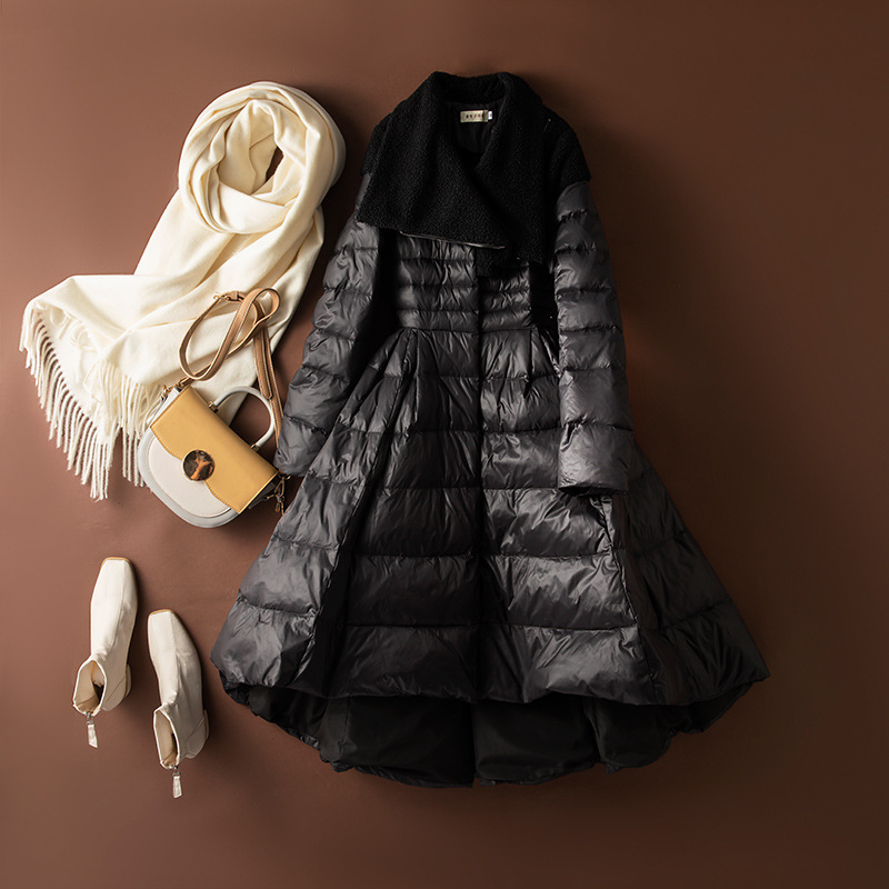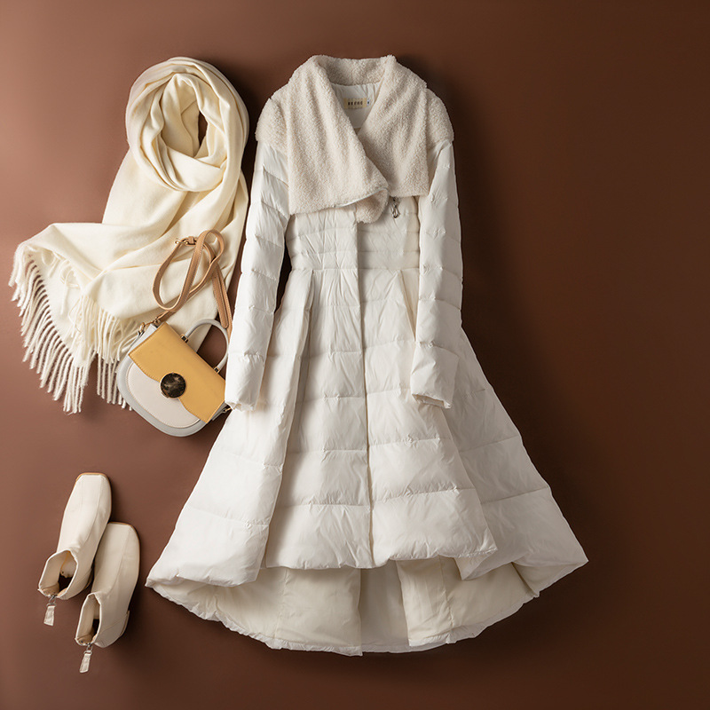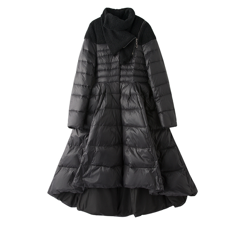 겨울 크리에이티브 디자인 센스 빅 스커트 코트 위장 패션 유럽 역 연예인 우아한 다운 재킷 여성용 중간 길이