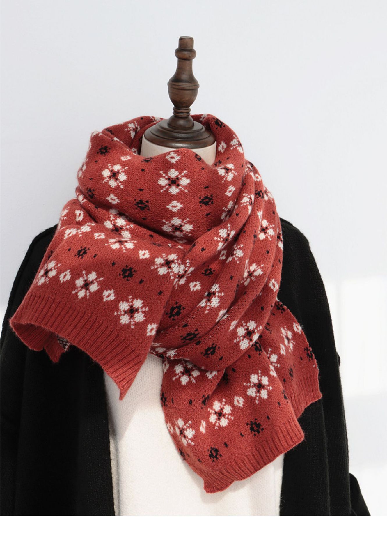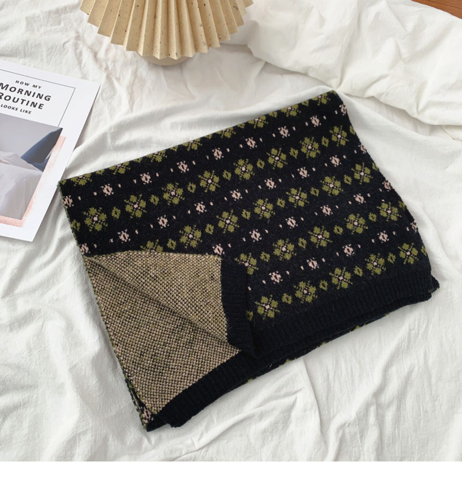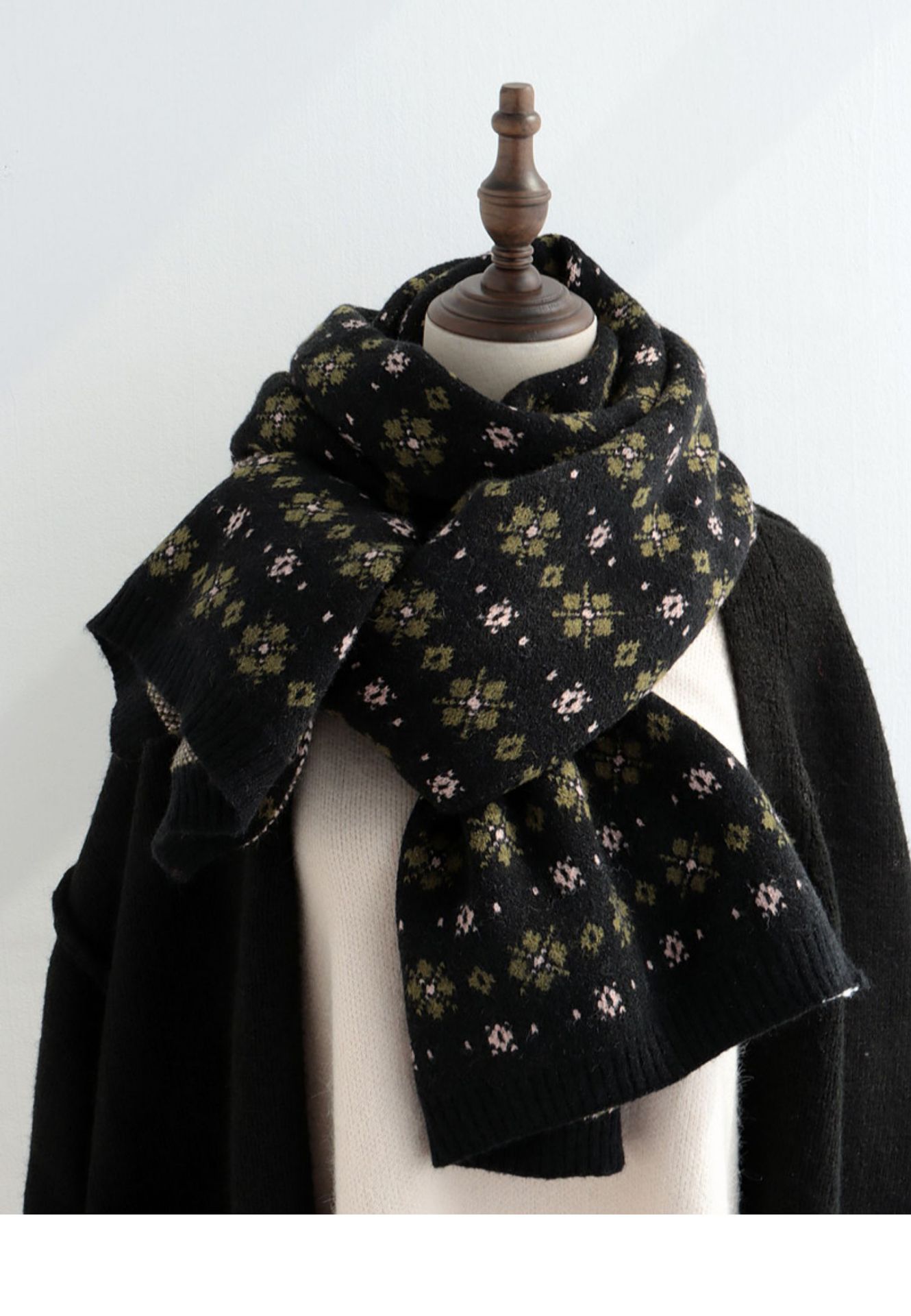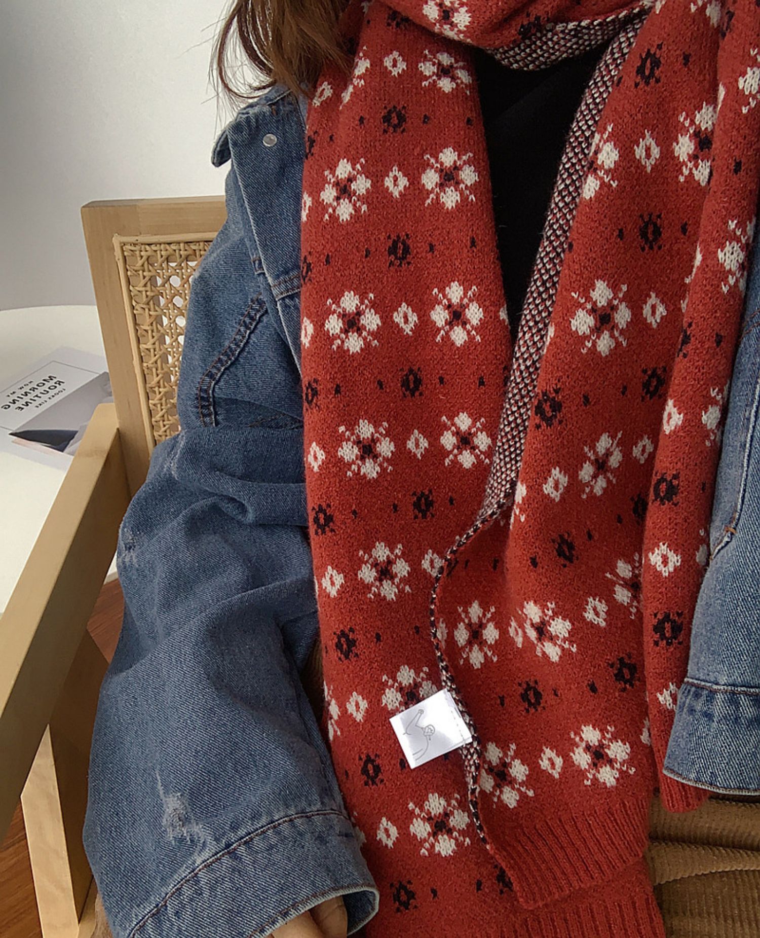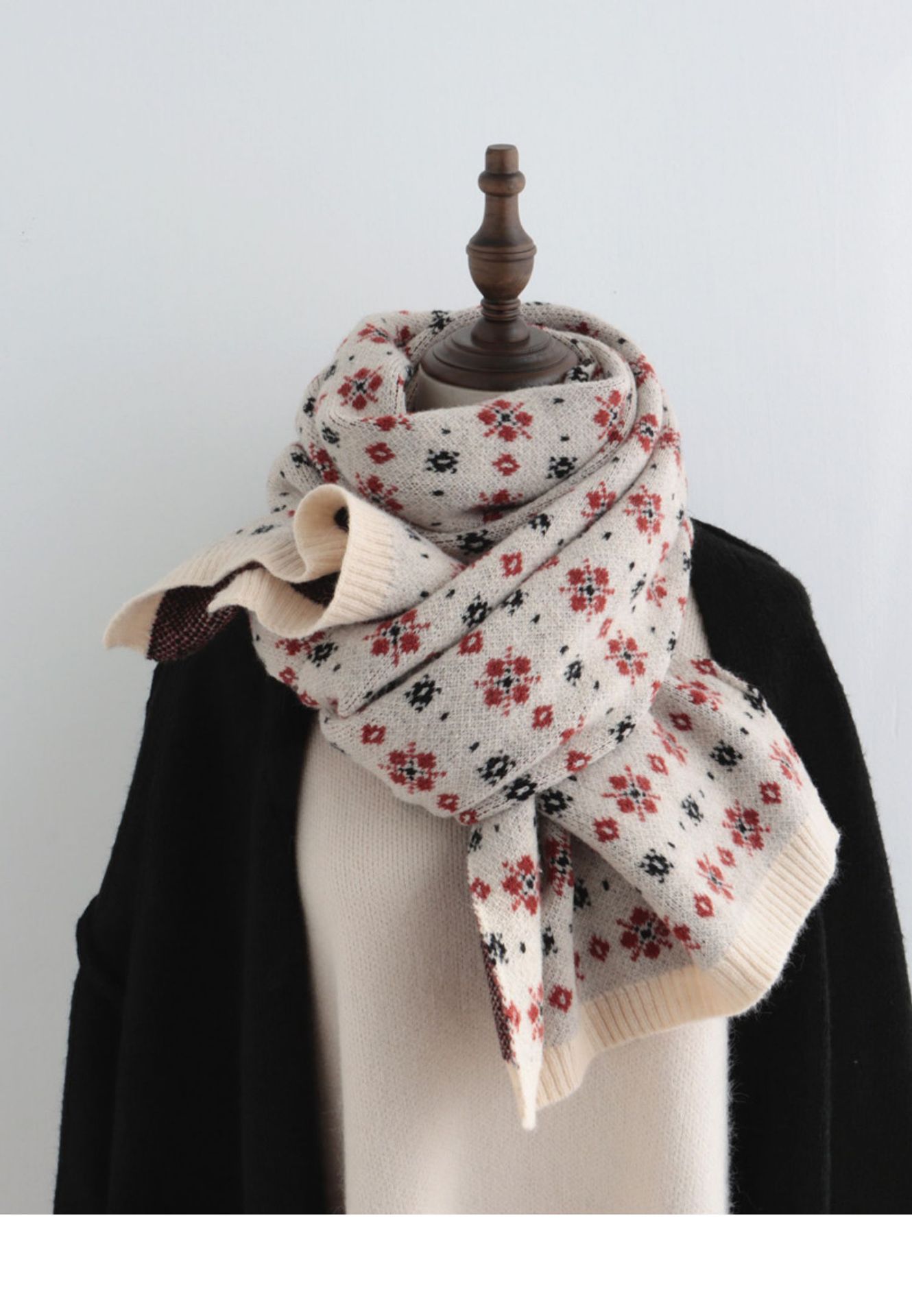 2024 겨울 신상품 꽃무늬 모직 스카프, 두껍고 따뜻한 스카프, 학생용 일본 복고풍 스카프, 다용도