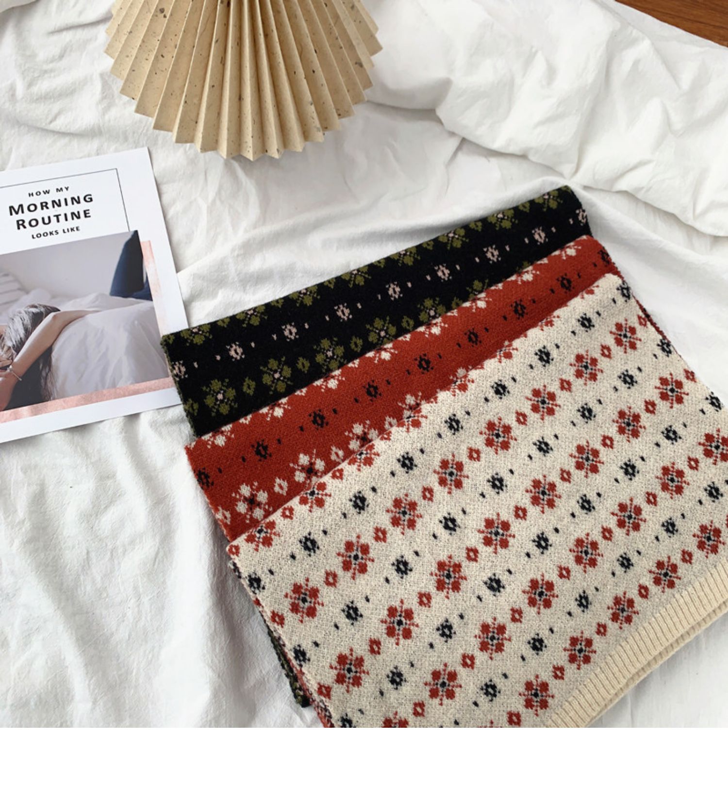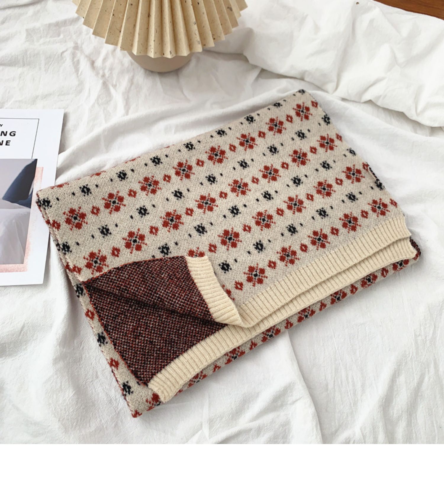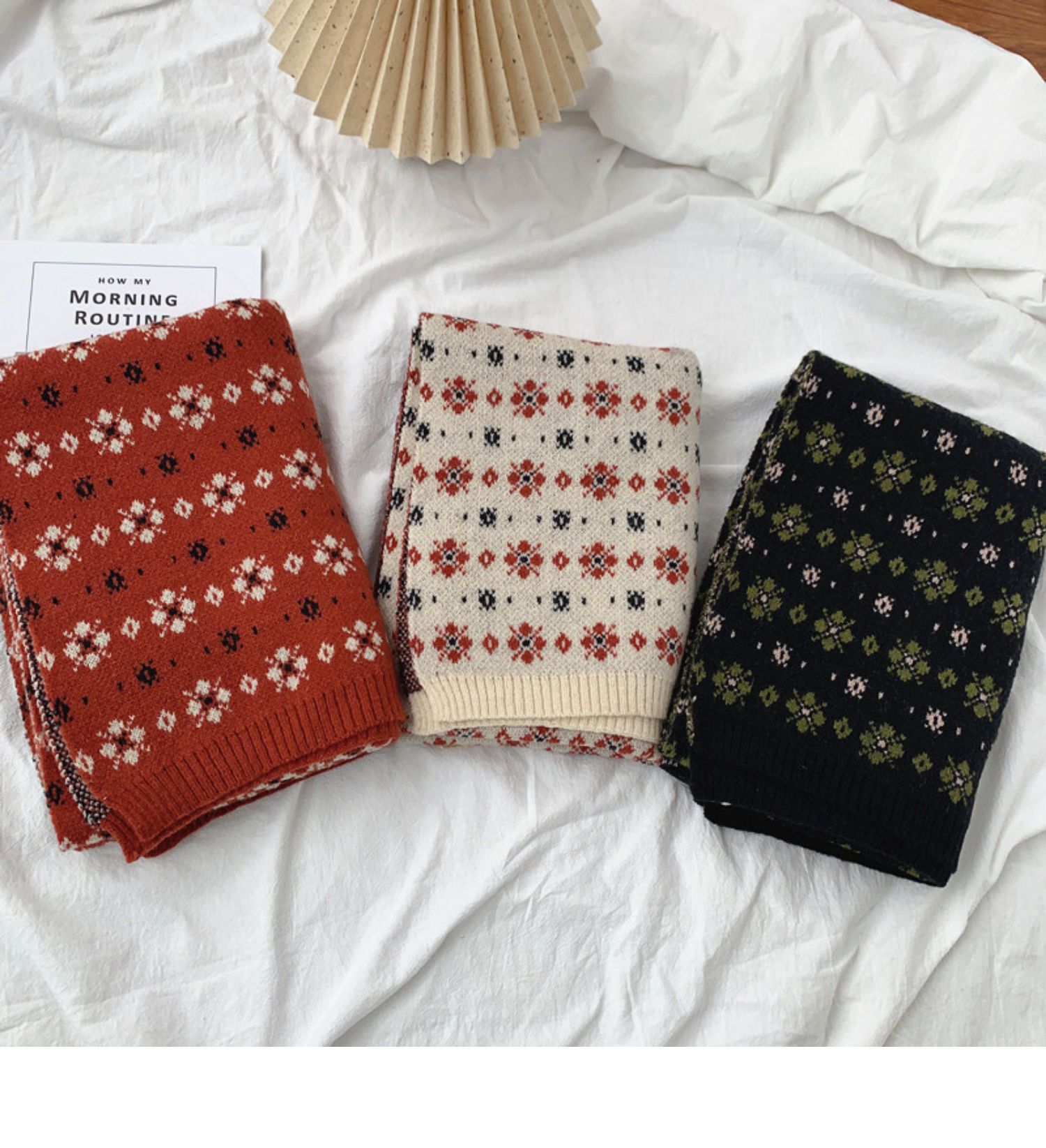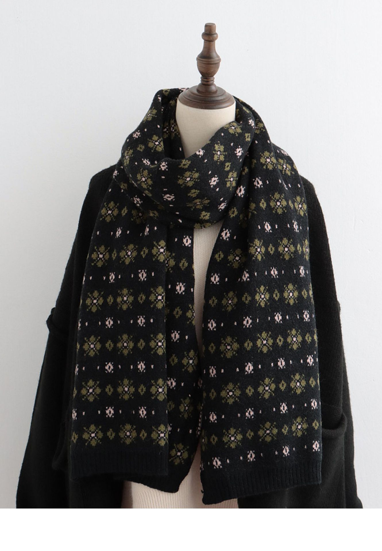 2024 겨울 신상품 꽃무늬 모직 스카프, 두껍고 따뜻한 스카프, 학생용 일본 복고풍 스카프, 다용도