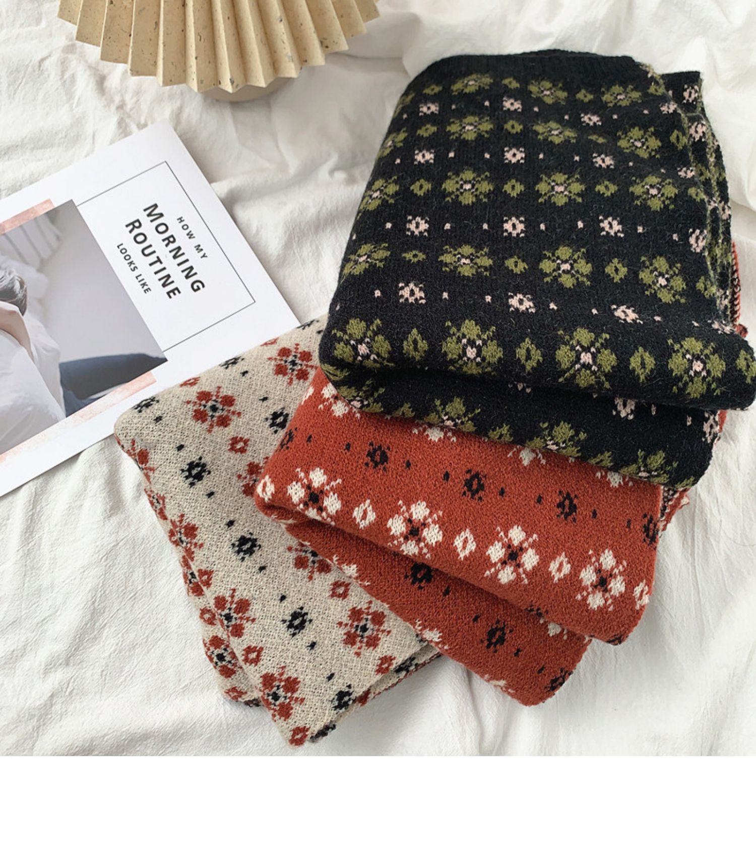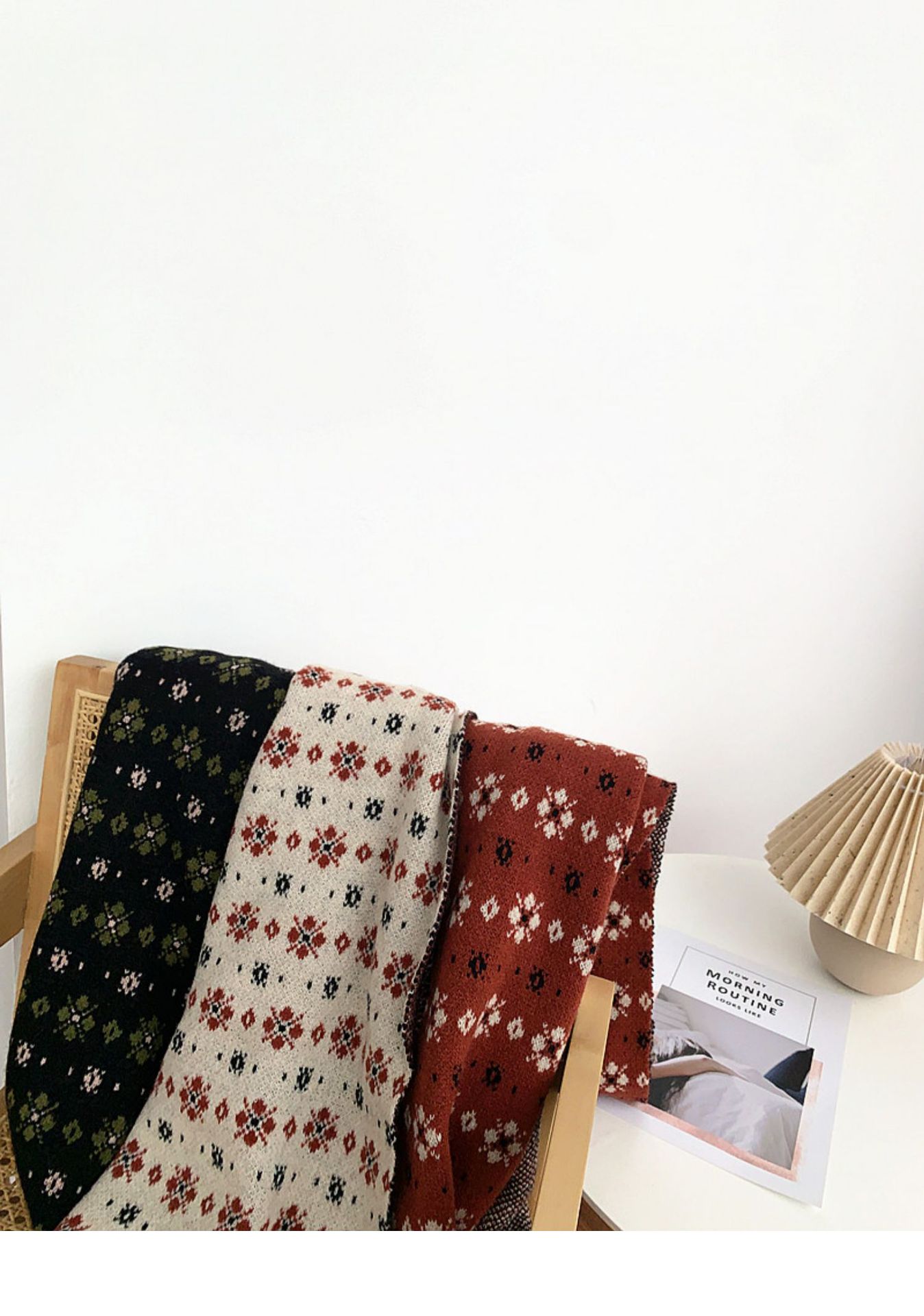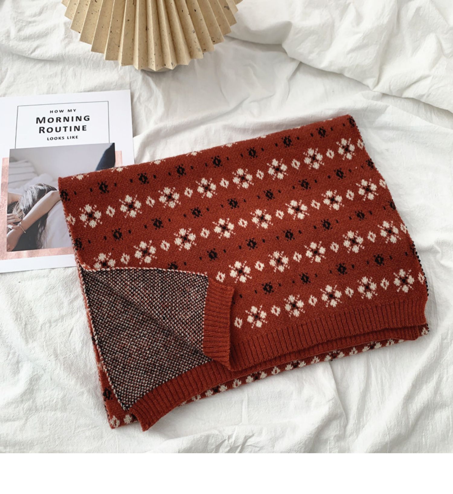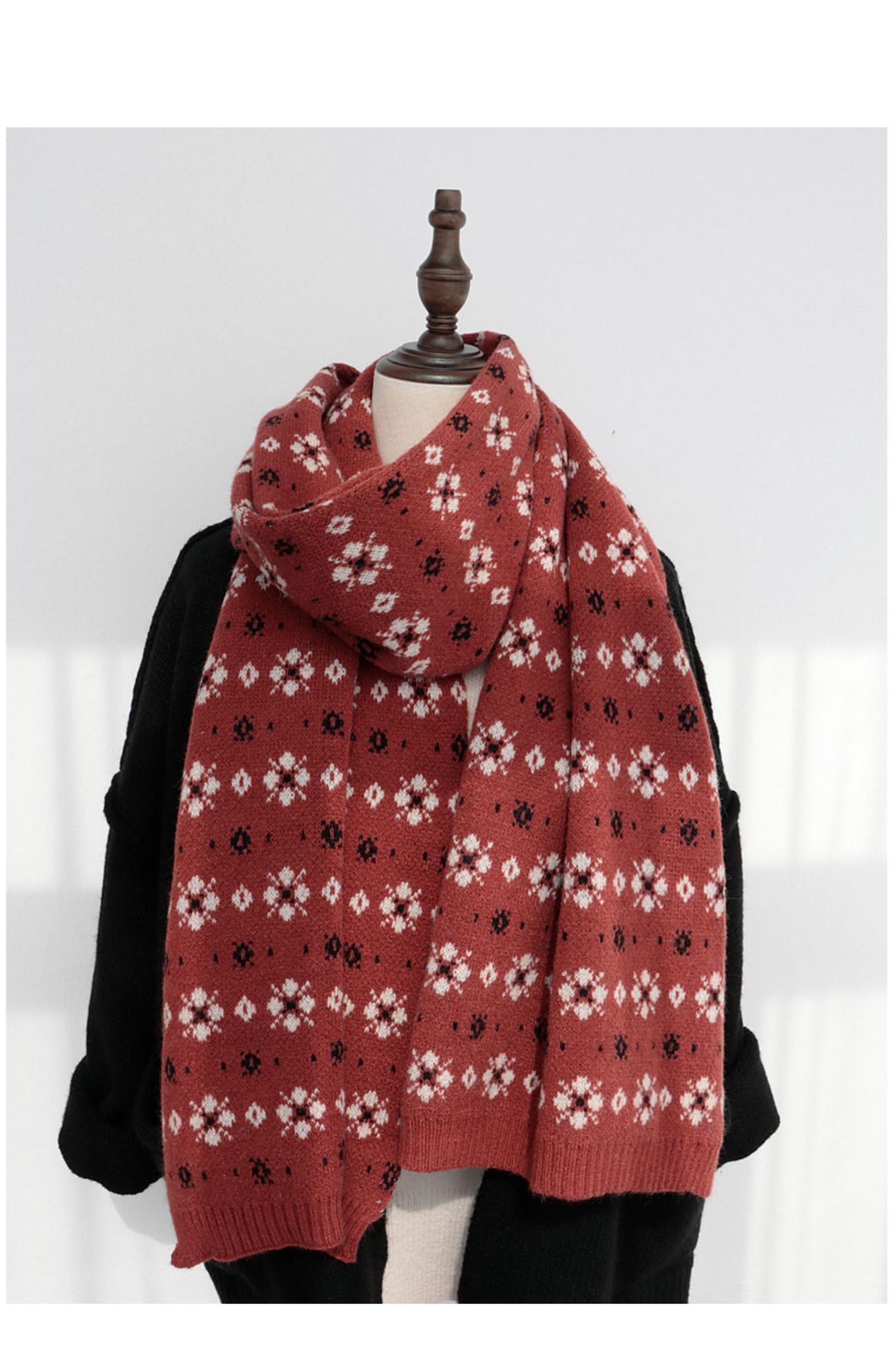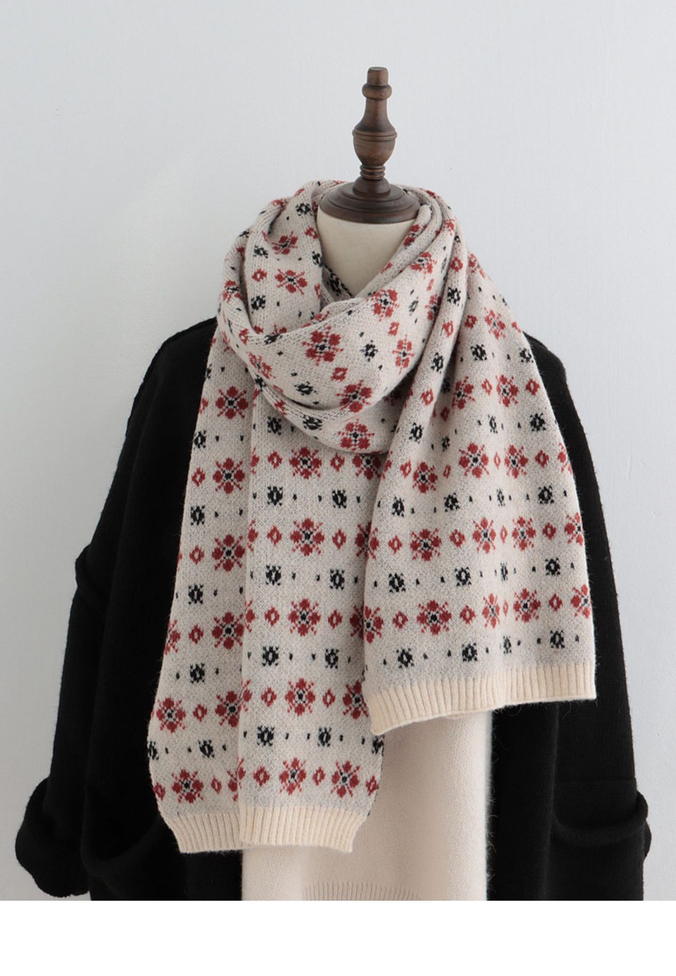 2024 겨울 신상품 꽃무늬 모직 스카프, 두껍고 따뜻한 스카프, 학생용 일본 복고풍 스카프, 다용도