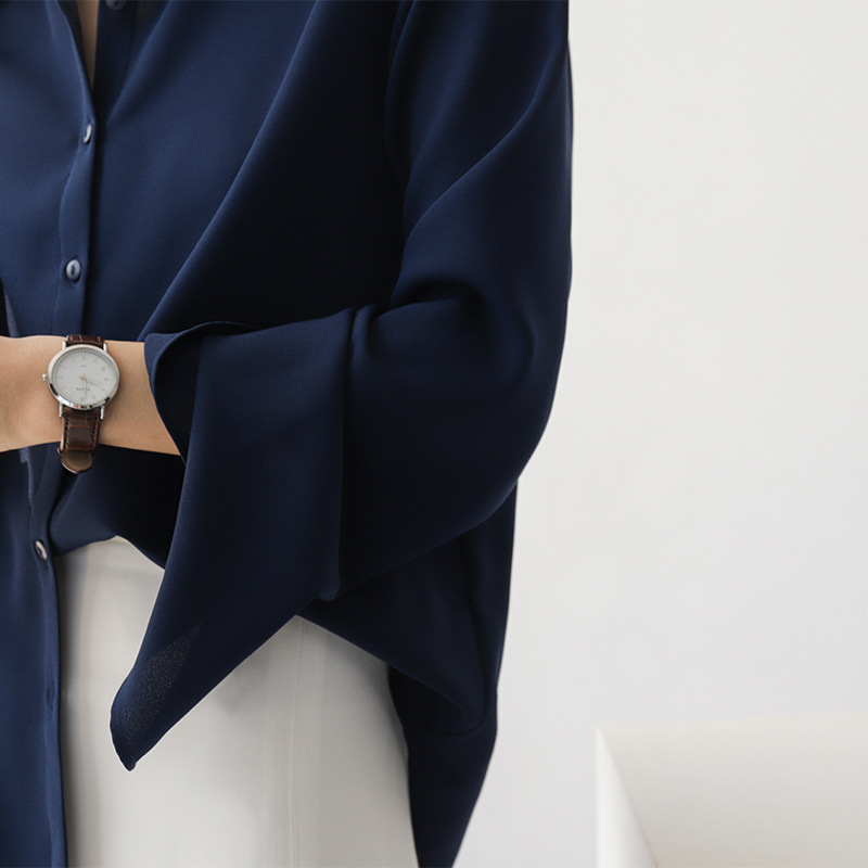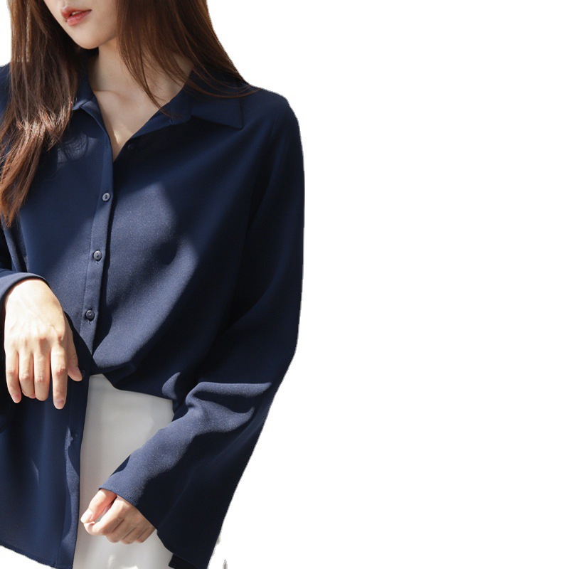 雪纺长袖衬衫女2021春秋慵懒宽松上衣喇叭袖时尚纯色衬衣潮