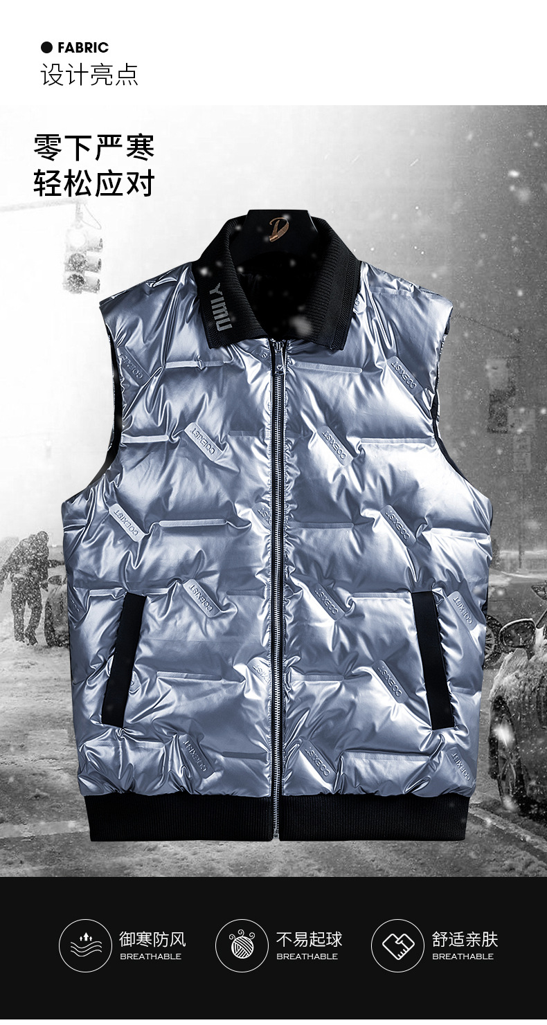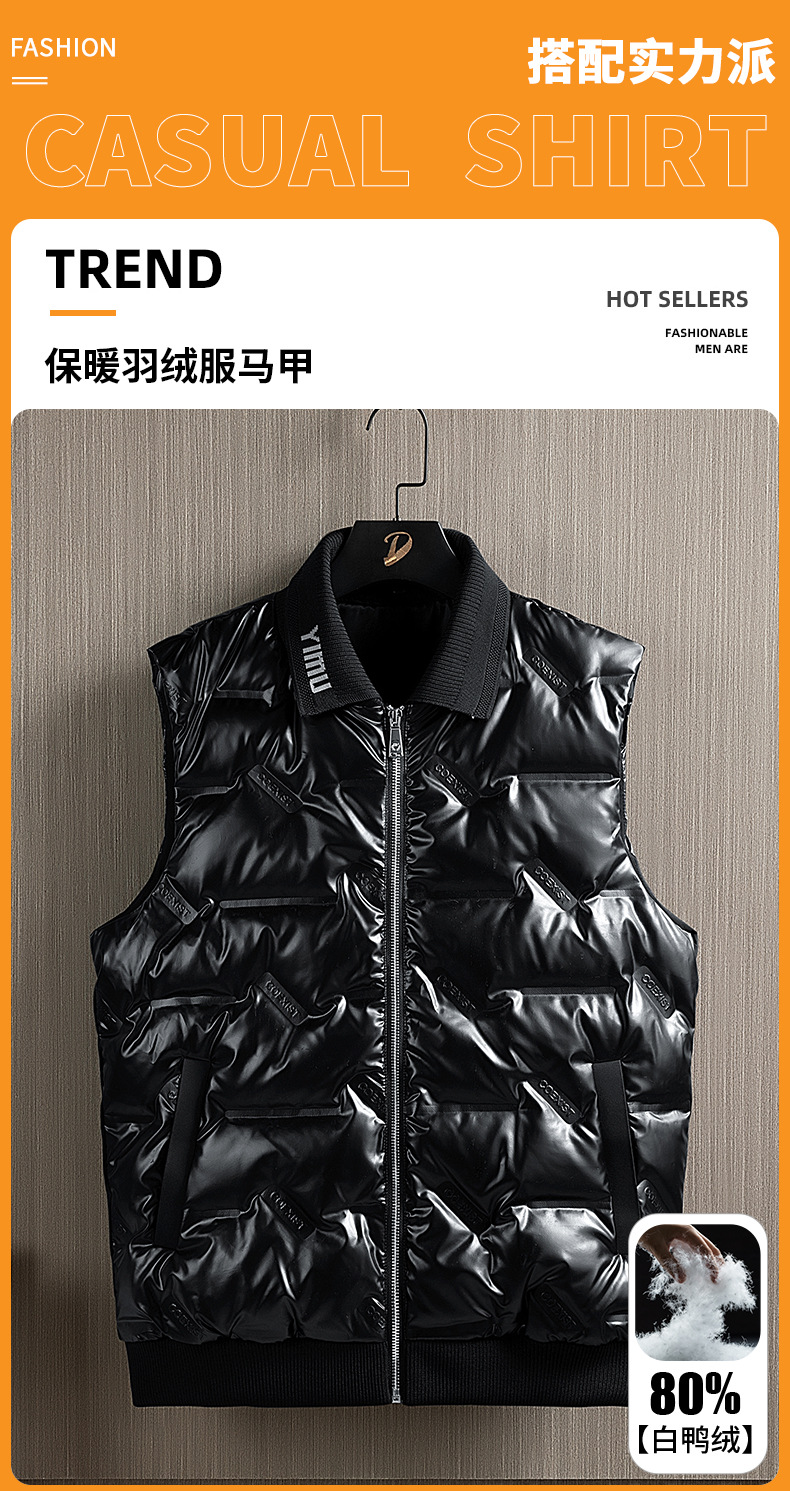 다운 조끼 남성용 2023 겨울 패션 브랜드 따뜻한 민소매 조끼 코트 양복 조끼 80% 흰색 오리 다운 조끼 남성용