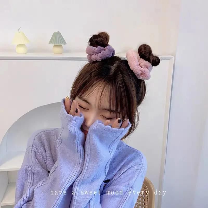 한국 가을과 겨울 귀여운 모조 토끼 벨벳 헤어 링 소프트 따뜻한 모피 헤어 로프 대장 링 헤어 로프 헤어 액세서리 여성