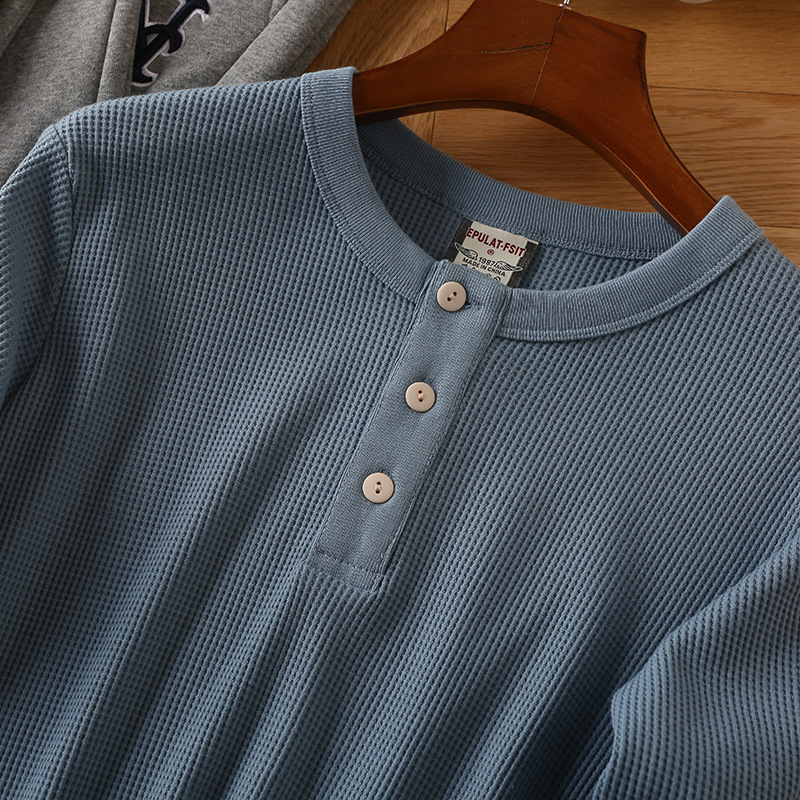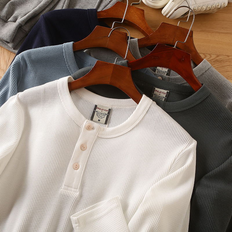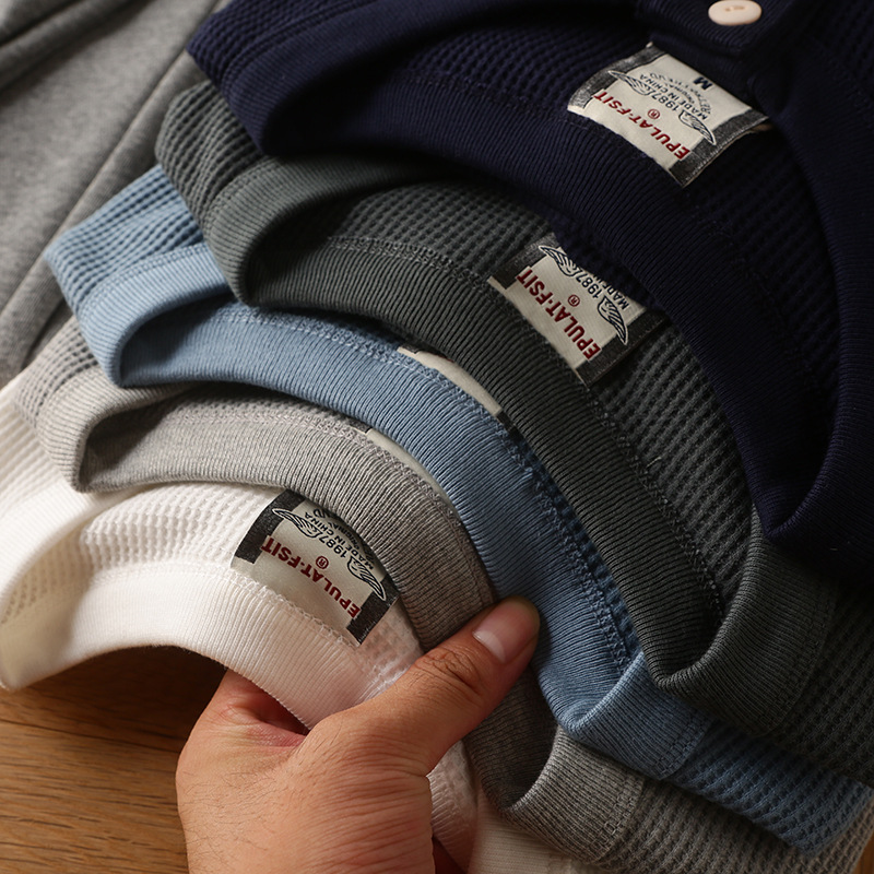 大体搜索了一下线上选用华夫格面料的亨利领长T