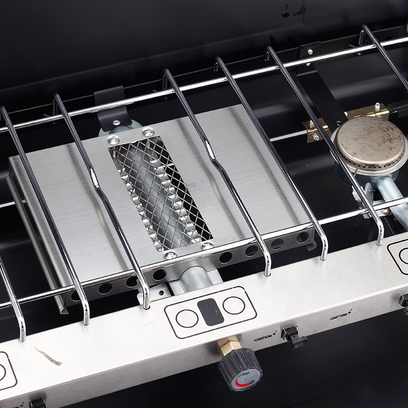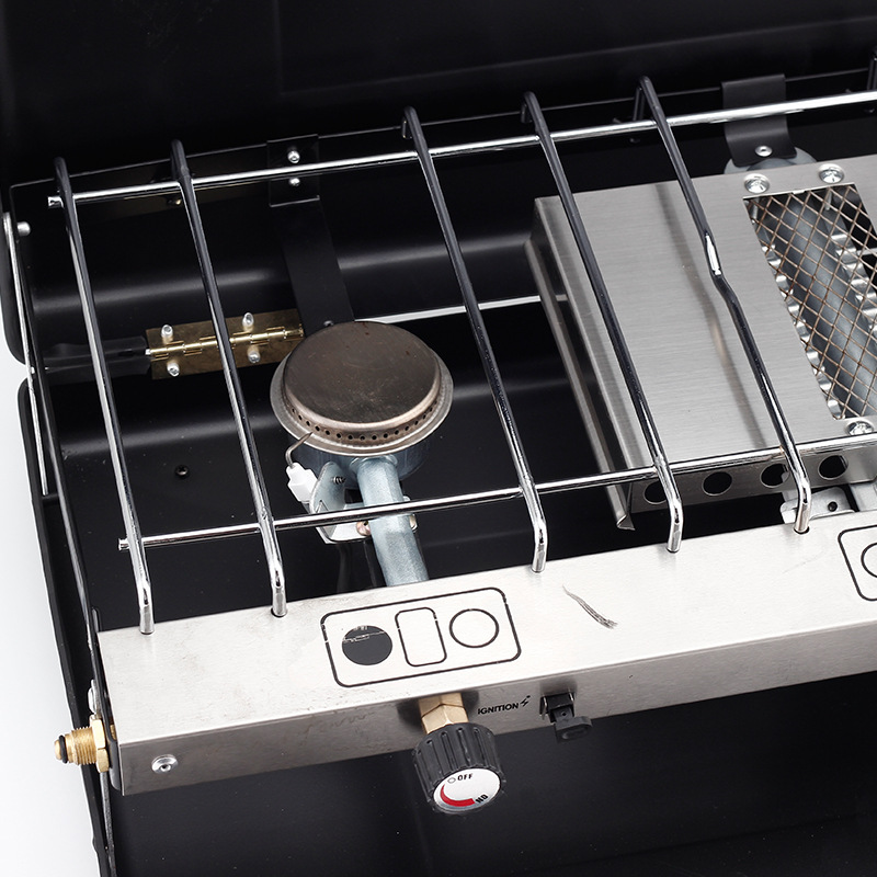야외 휴대용 접이식 바베큐 오븐 휴대용 가스 스토브 캠핑 피크닉 가스 이중 스토브 3 헤드 방풍 저장 오븐