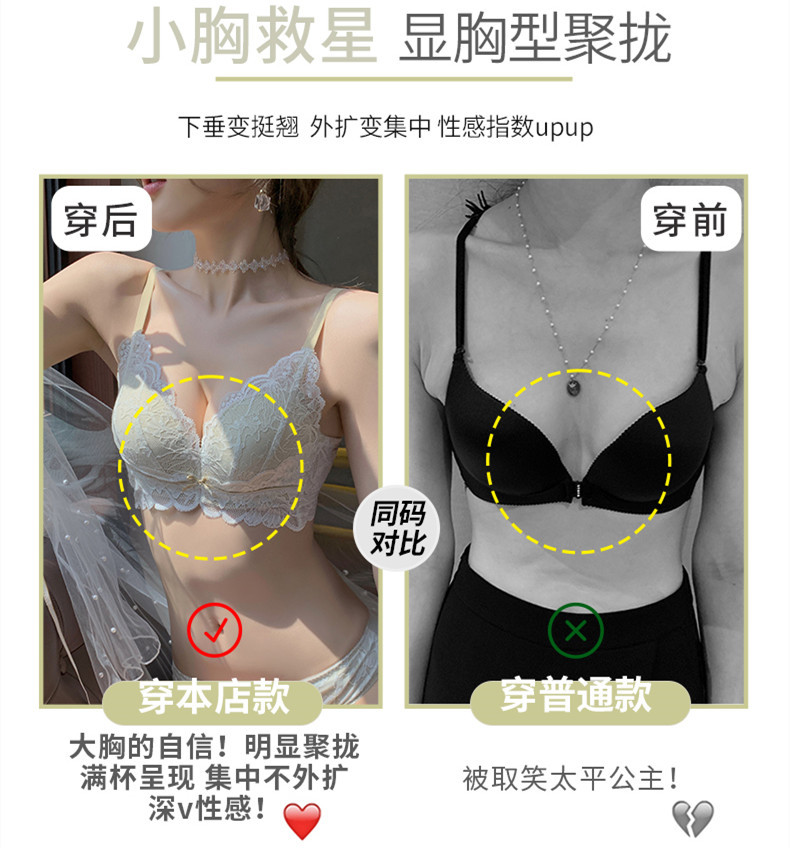 일본과 한국 패션 레이스 속옷 여성의 작은 가슴 푸시 업 브래지어 대형 U-백 브래지어 조절 가능한 세트