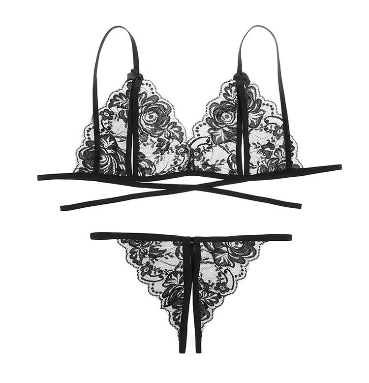 섹시한 란제리 팬티 섹시 가랑이 없는 여성용 레이스 끈 플러스 사이즈 3 점 세트 원근감 레이스 업 브라
