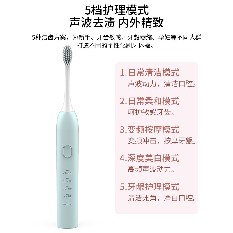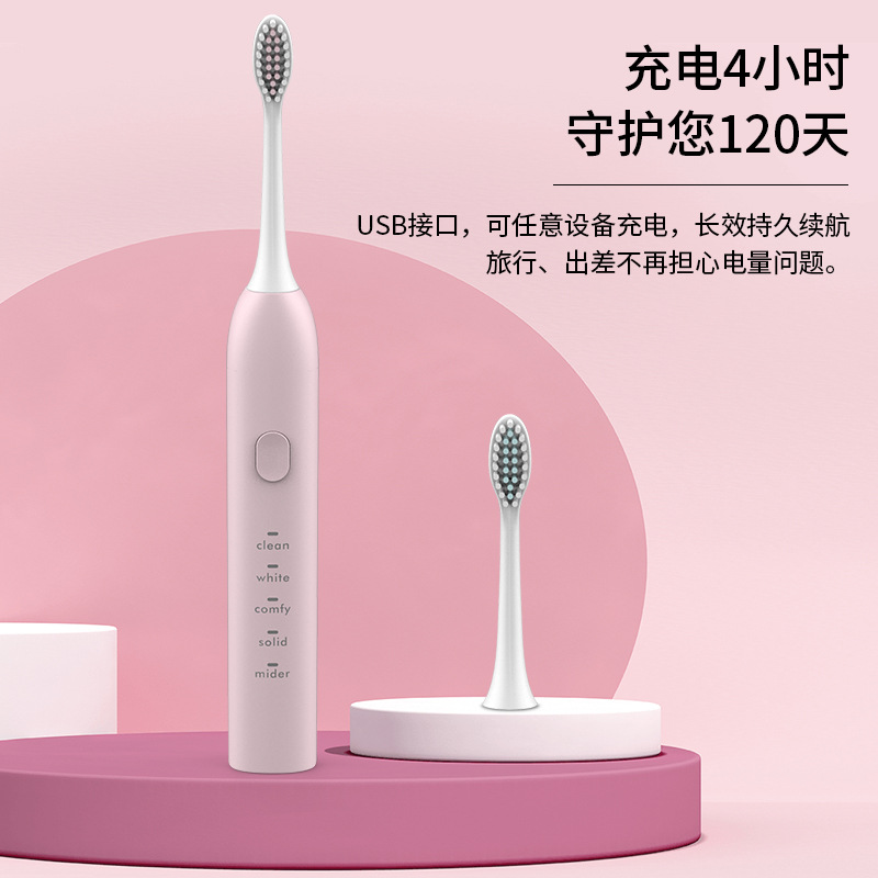 국경을 넘어 인기 있는 성인용 전동 칫솔, 부드러운 모의 충전식 휴대용 음파 칫솔, 긴 배터리 수명, 가정용 도매