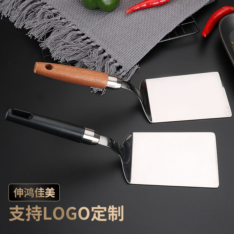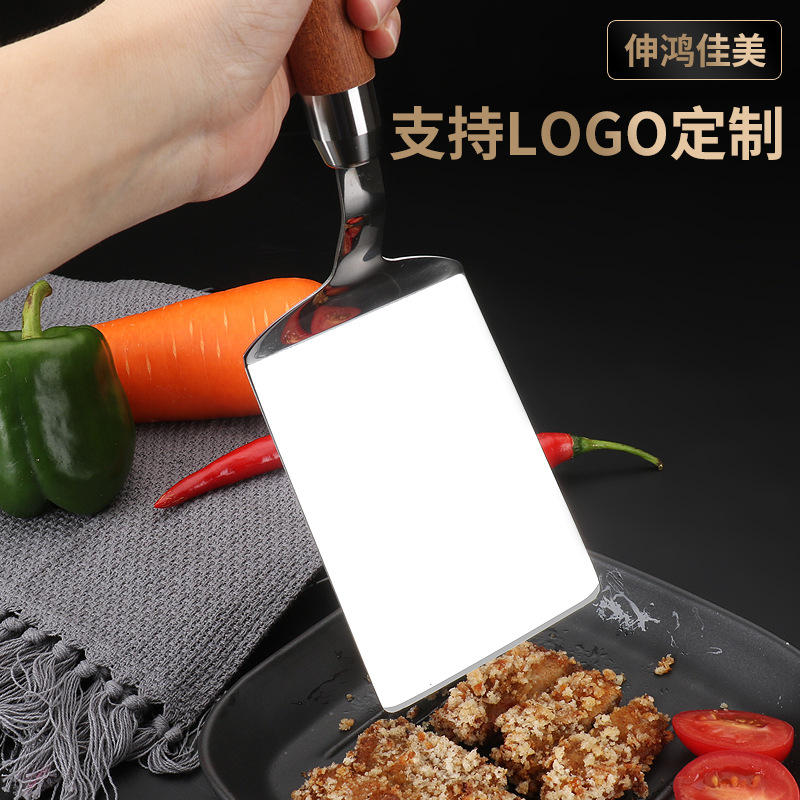 产品介绍:不锈钢手抓饼煎铲子,可以定制激光LOGO