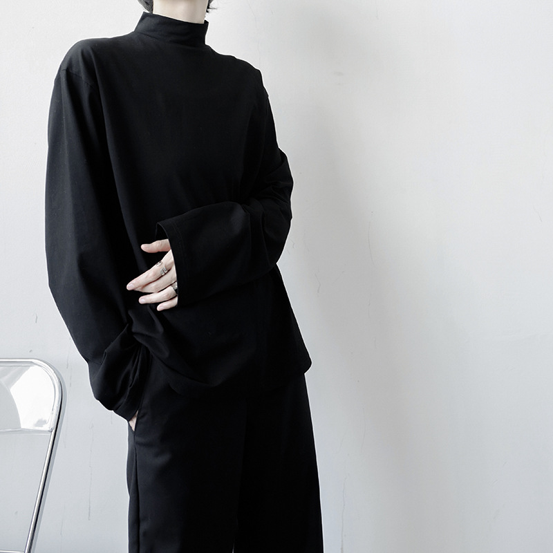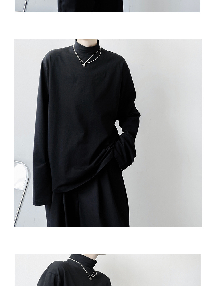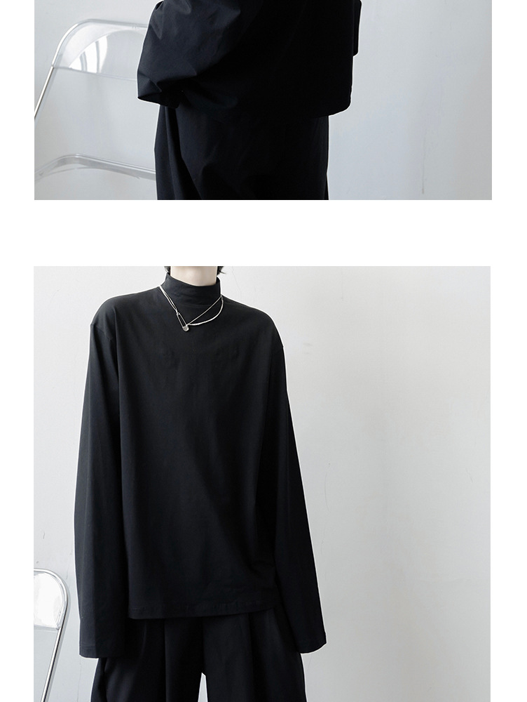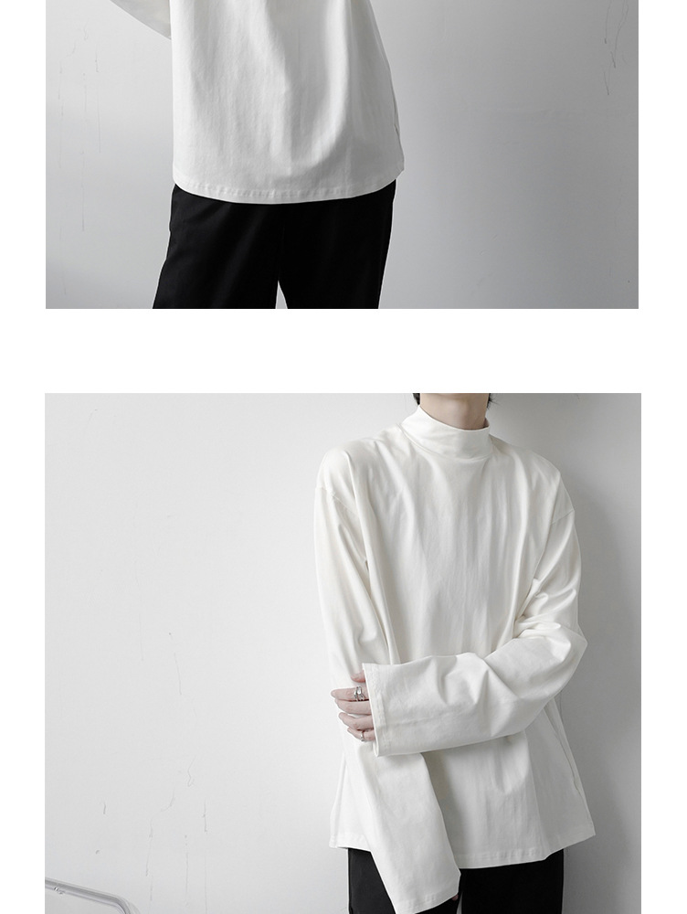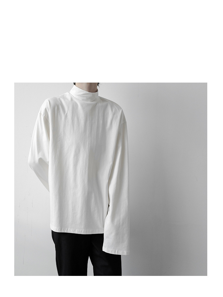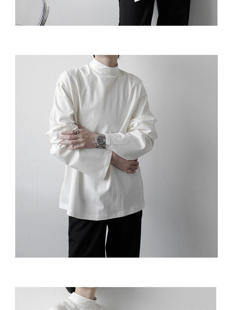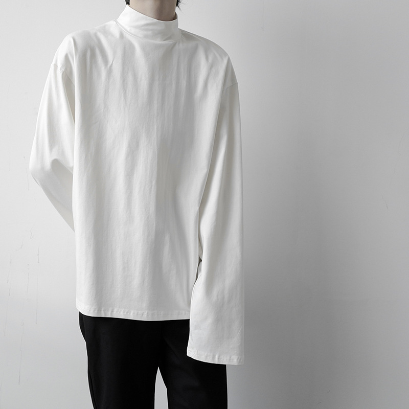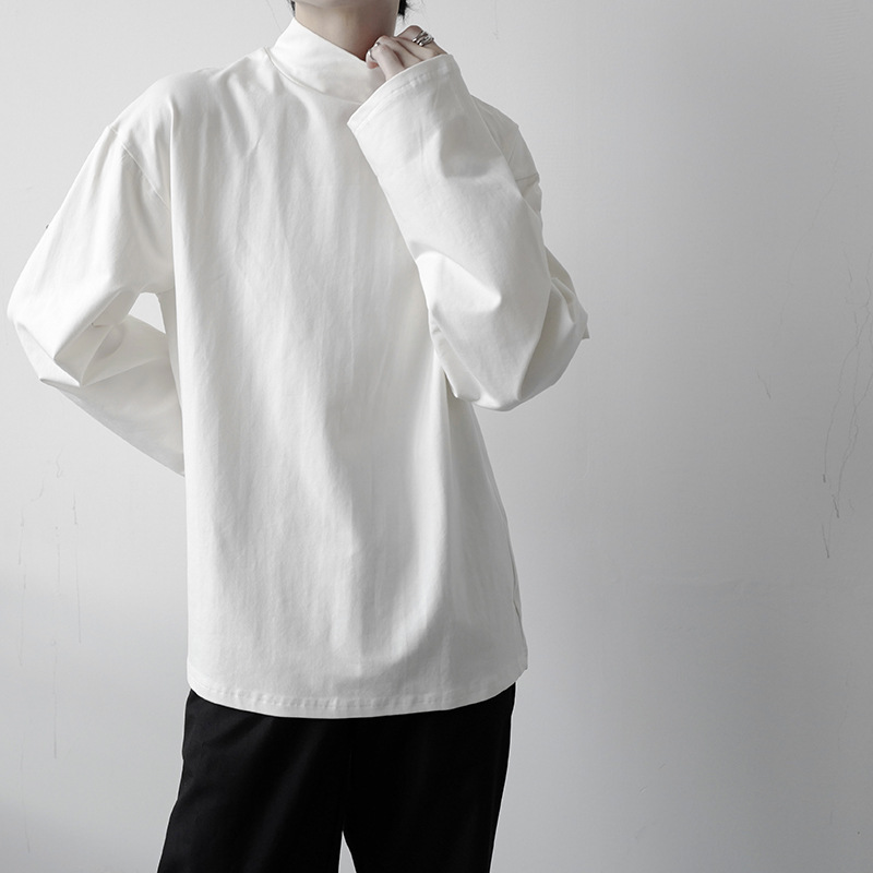 2021 가을 겨울 새로운 베이스 셔츠 긴팔 느슨한 퓨어 T 헤어 스타일리스트 스몰 하이 칼라 레트로 티셔츠 탑 트렌디 브랜드 남성복
