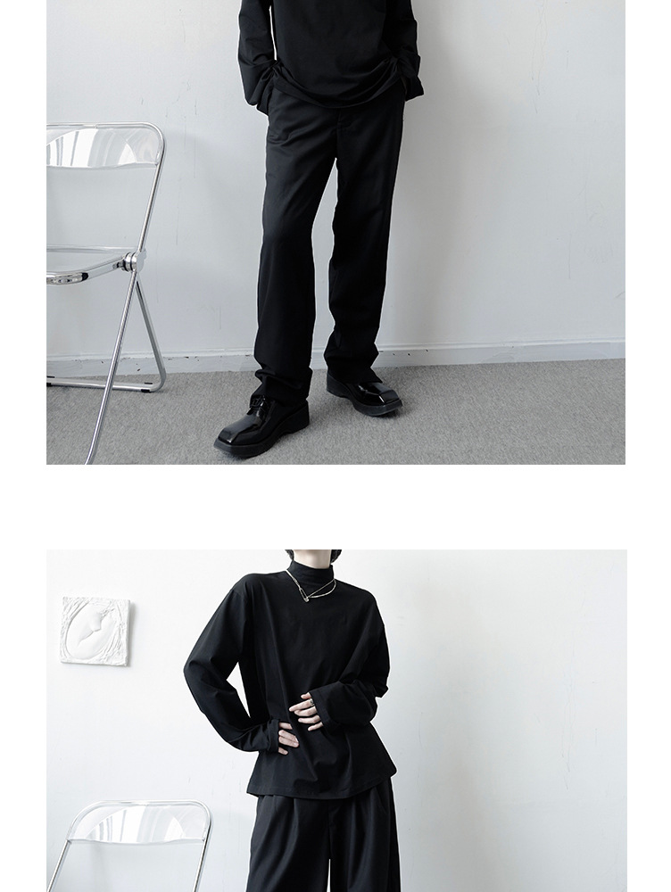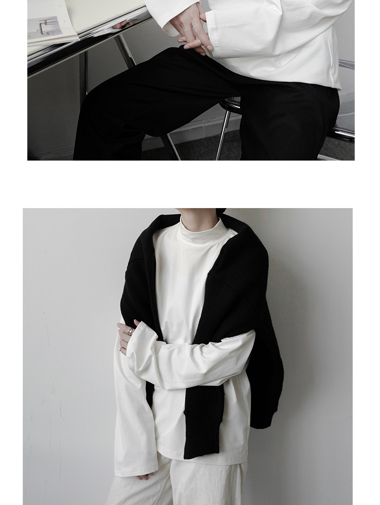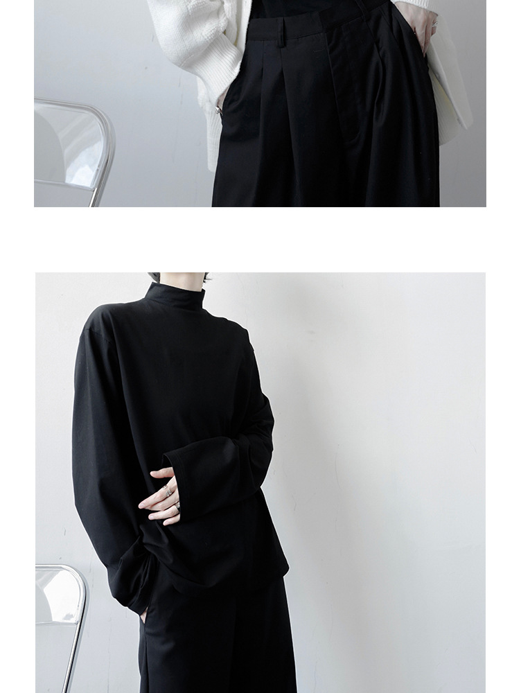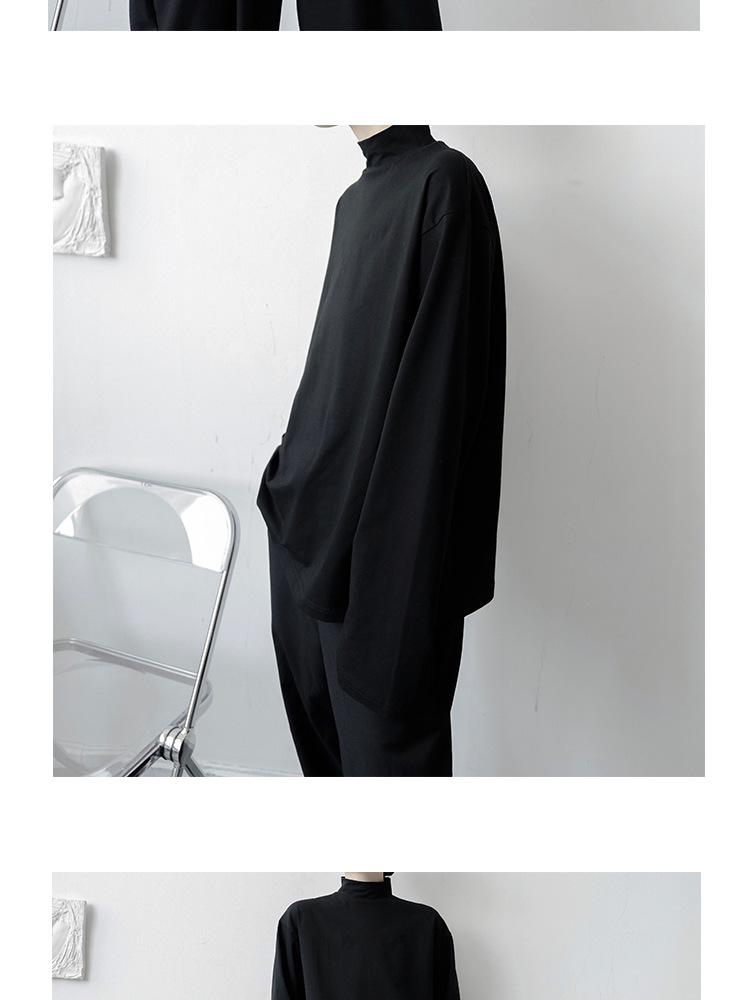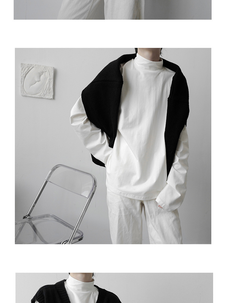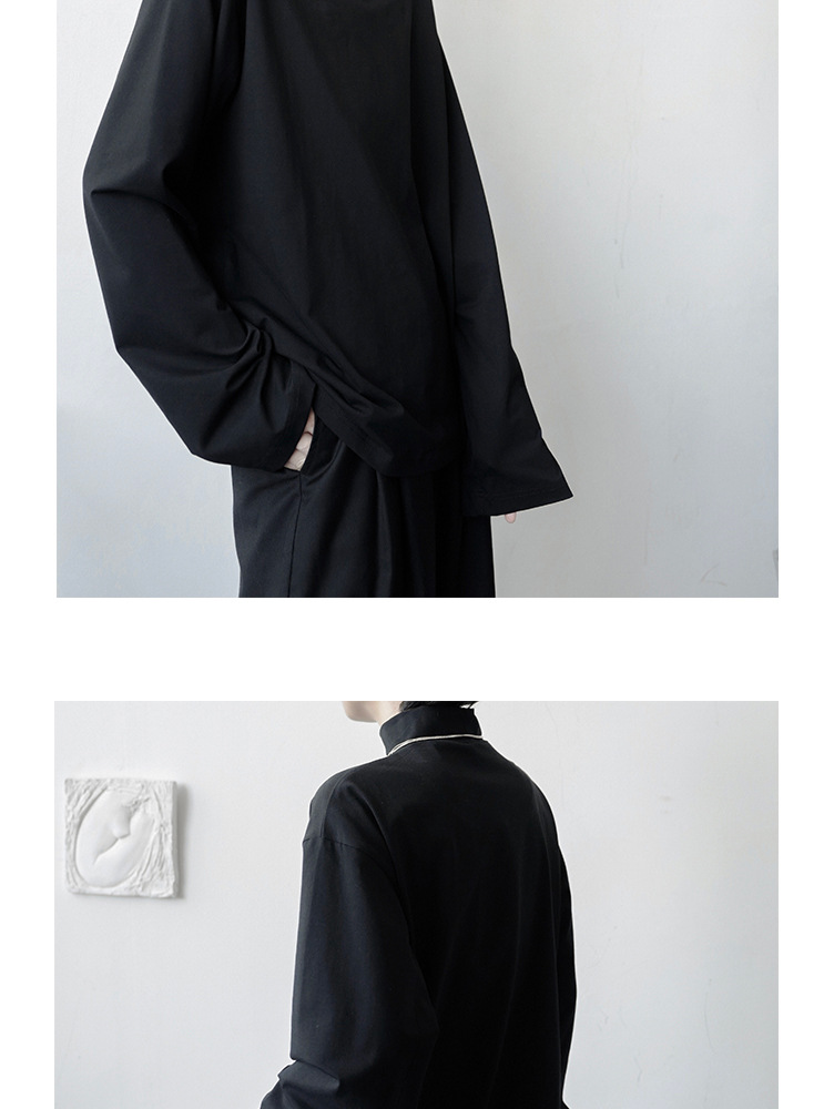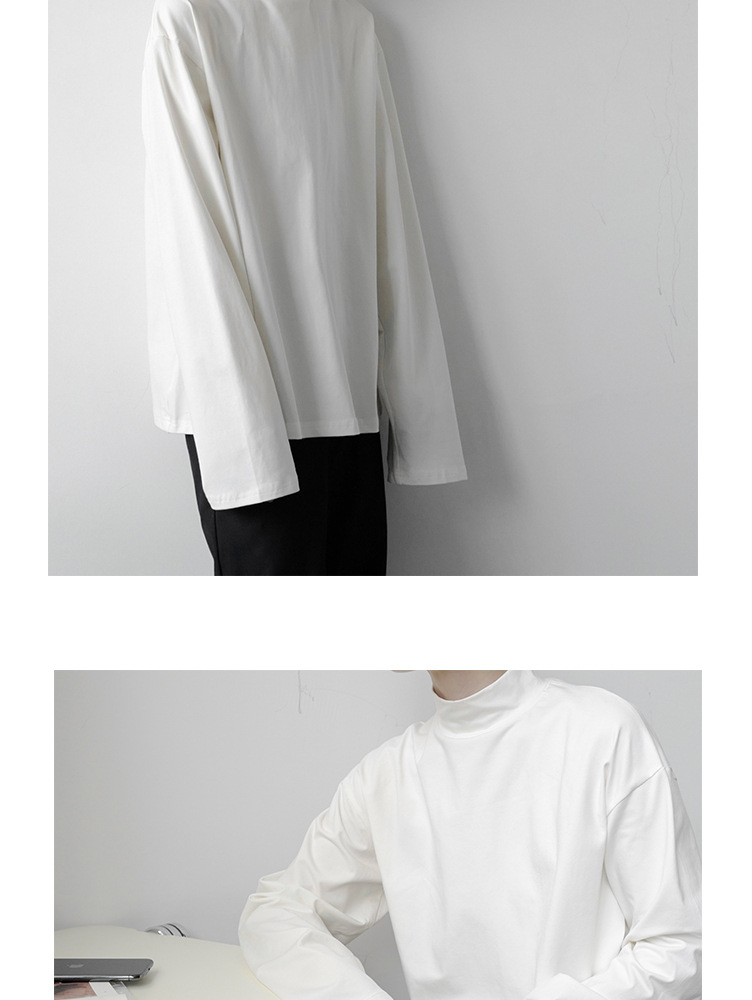 2021 가을 겨울 새로운 베이스 셔츠 긴팔 느슨한 퓨어 T 헤어 스타일리스트 스몰 하이 칼라 레트로 티셔츠 탑 트렌디 브랜드 남성복