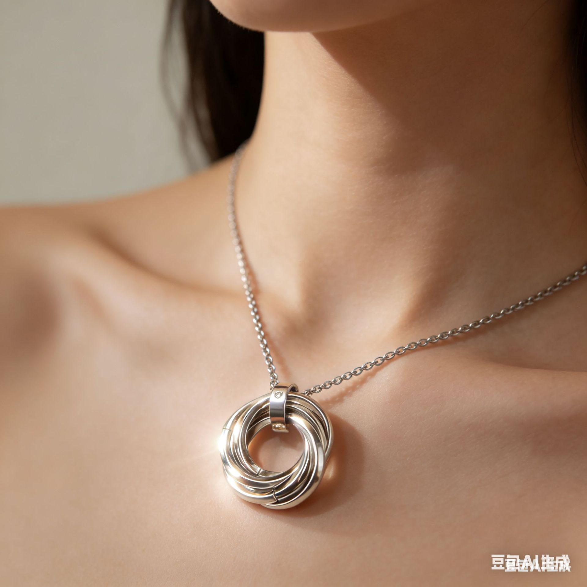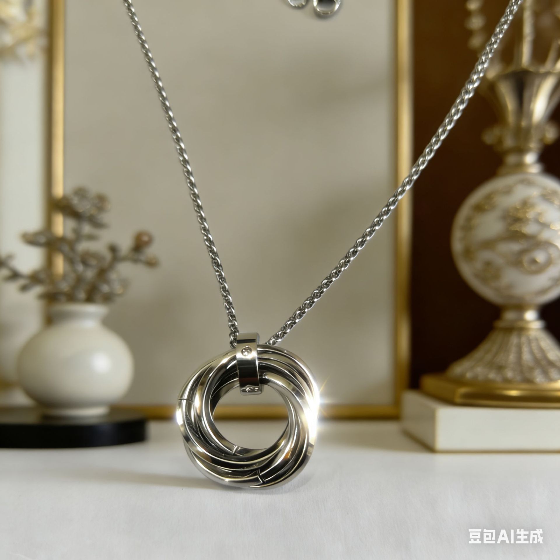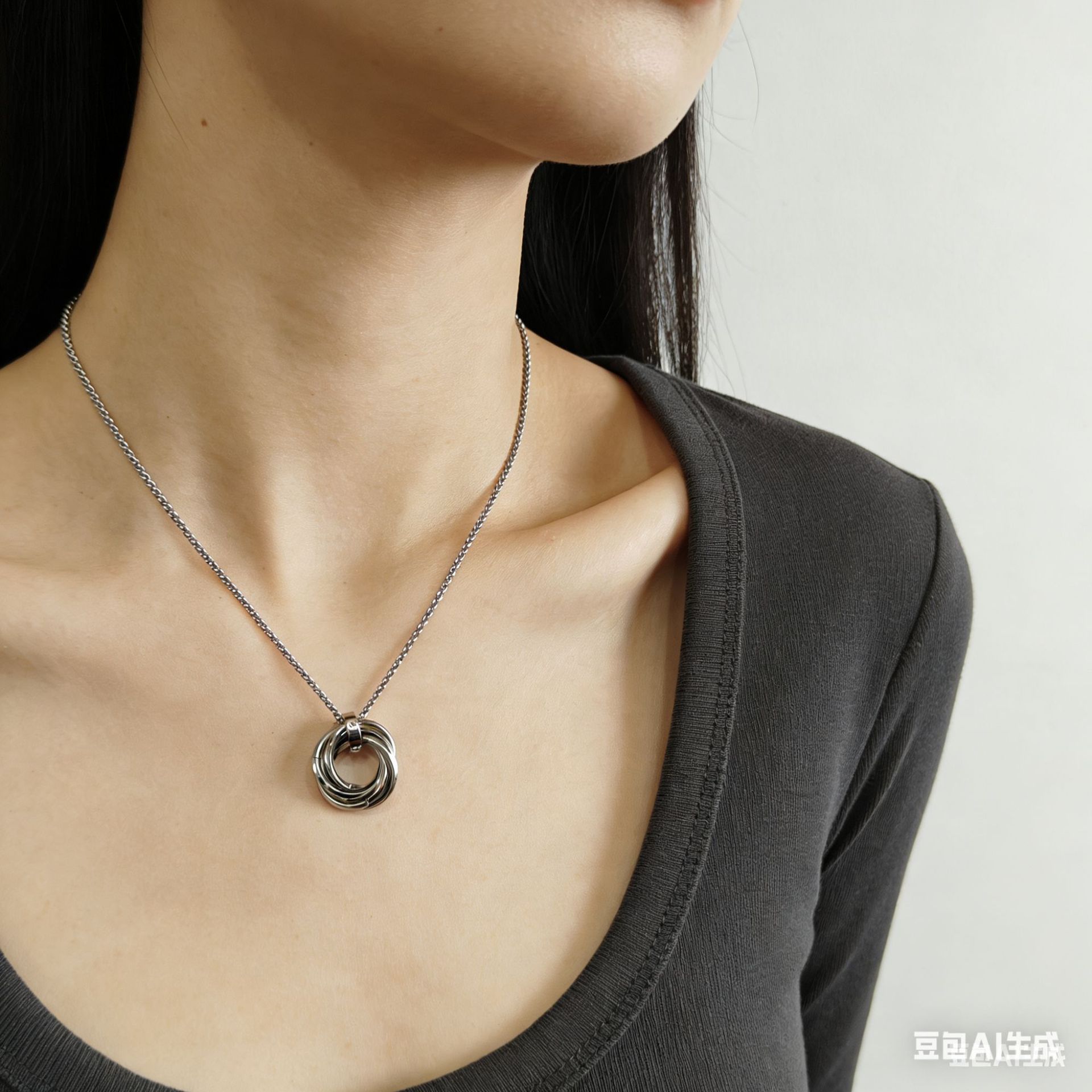 Douyin 일본 및 한국 힙합 티타늄 스틸 스웨터 체인 삼생삼월 삼환 펜던트 스테인레스 스틸 인터링크드 목걸이 펜던트