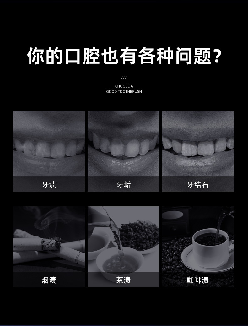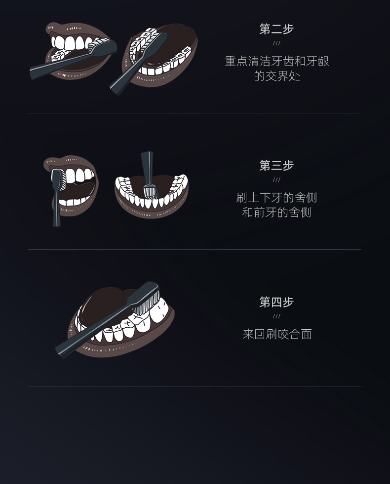 단단한 강모 칫솔 카본 블랙*2