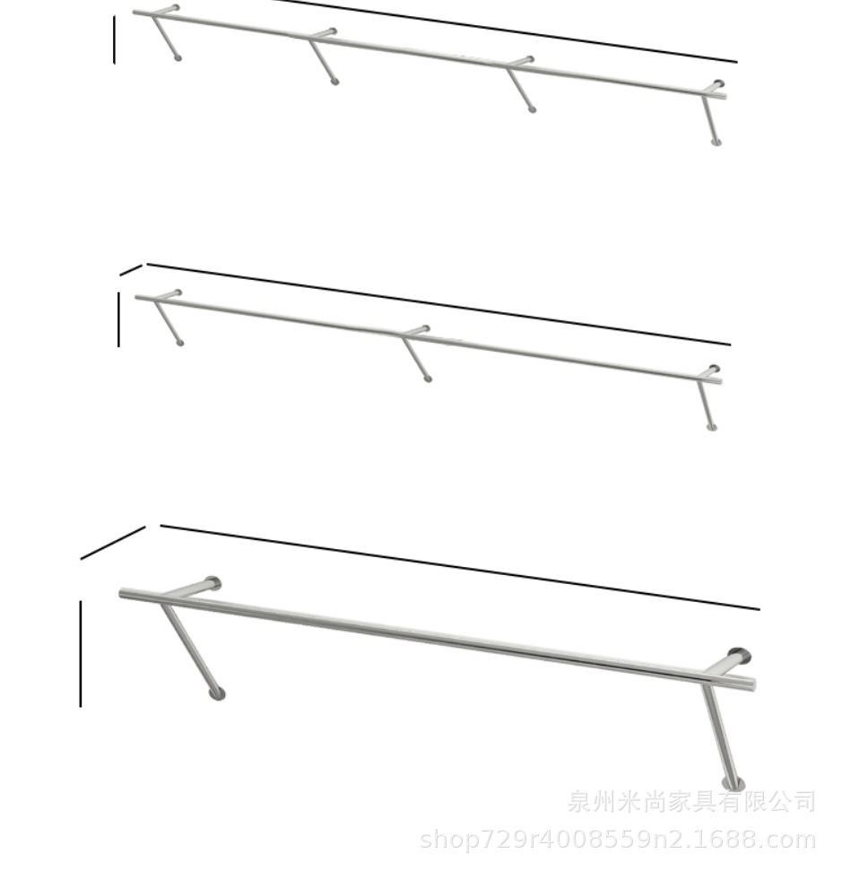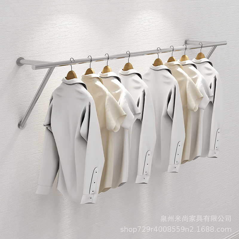 스테인리스 의류 매장 디스플레이 랙 벽걸이형 옷걸이 진열대 여성복 매장 선반 아동복 매장 옷걸이봉 의류