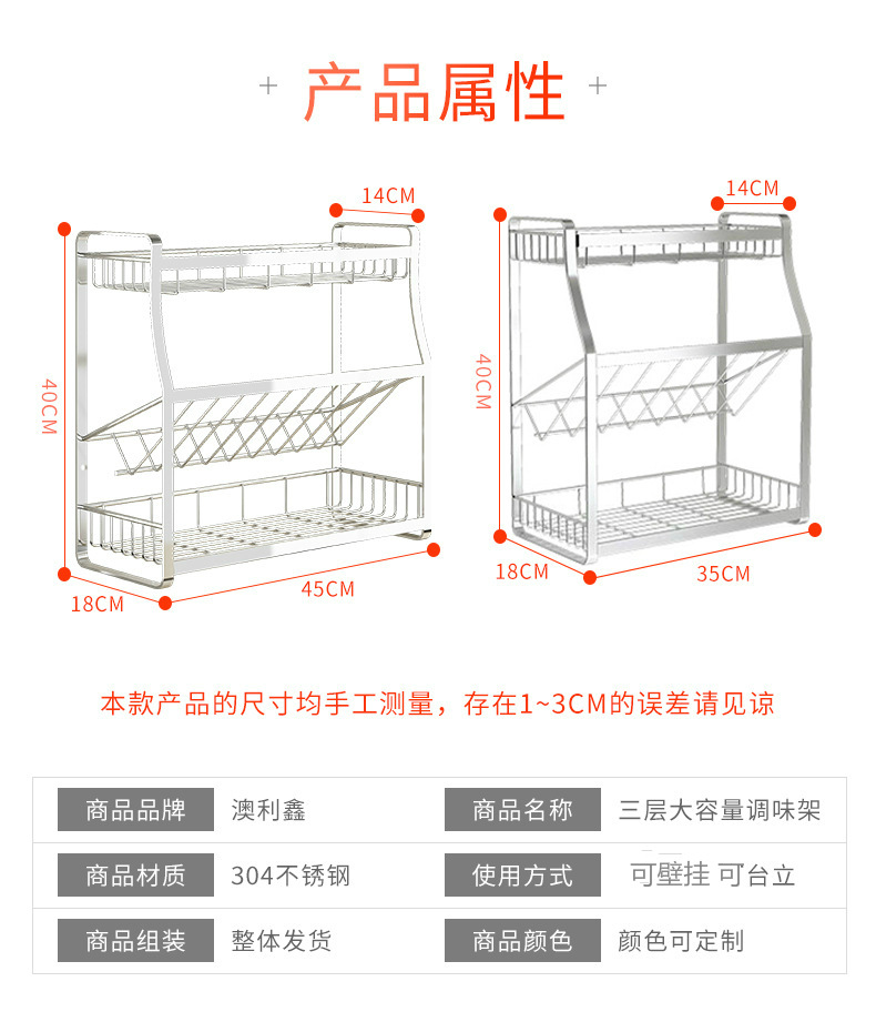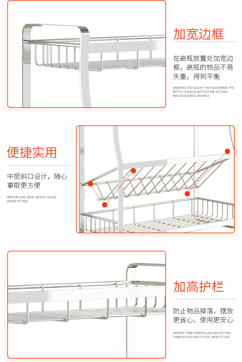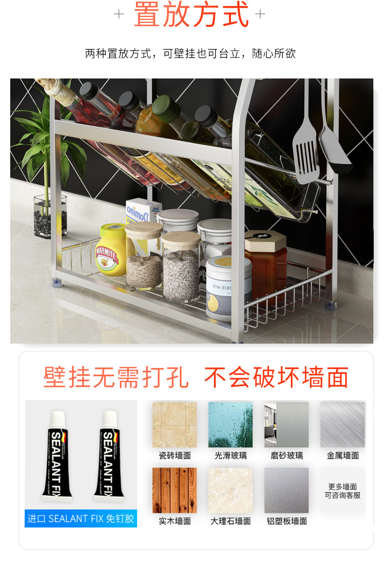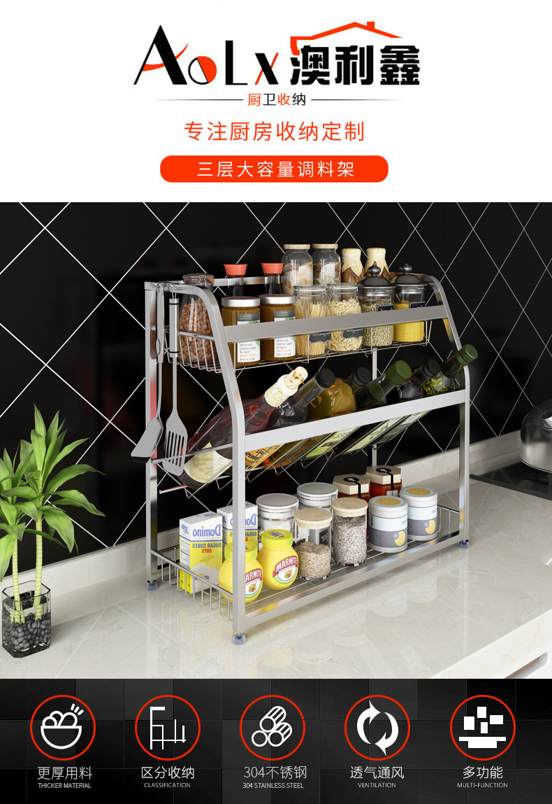 厨房置物架不锈钢家用神器多功能调料架厨房收纳架304 厨房调料架
