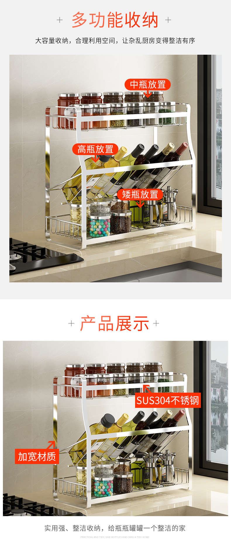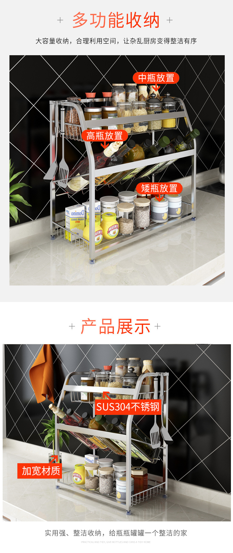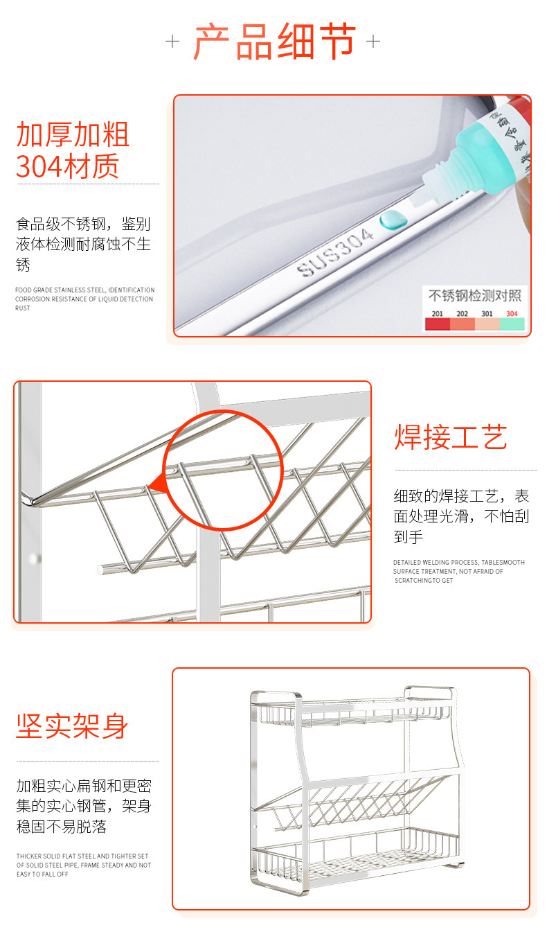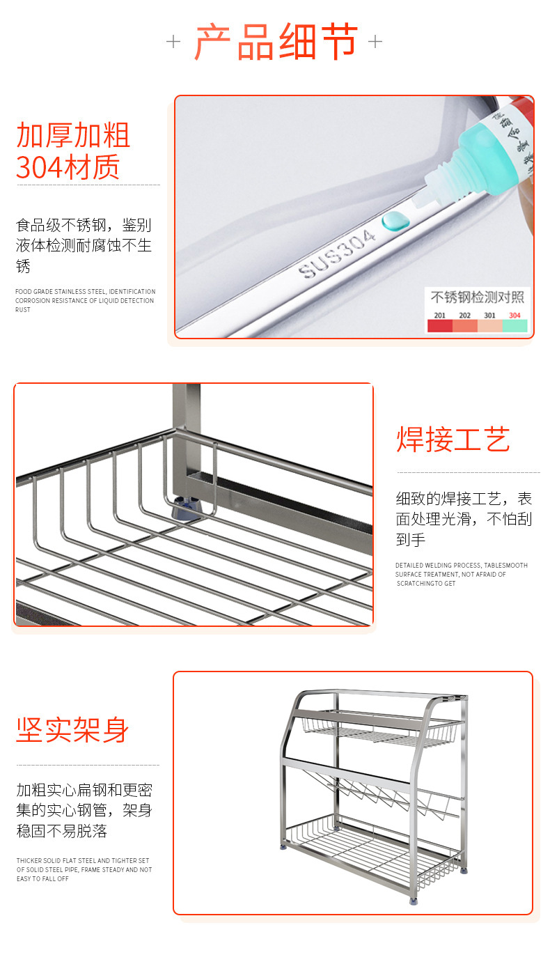 厨房置物架不锈钢家用神器多功能调料架厨房收纳架304 厨房调料架
