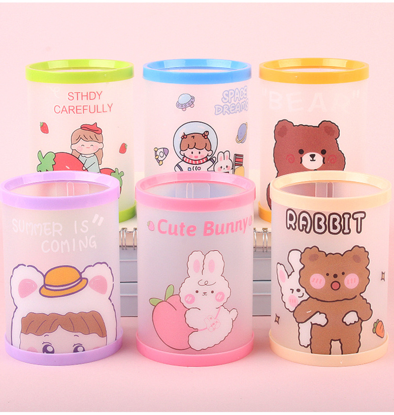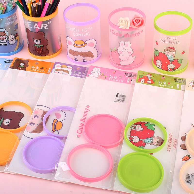크리 에이 티브 접이식 펜 홀더 다기능 데스크탑 사무실 보관 상자 어린이 귀여운 문구 라운드 펜 배럴 만화 펜 상자