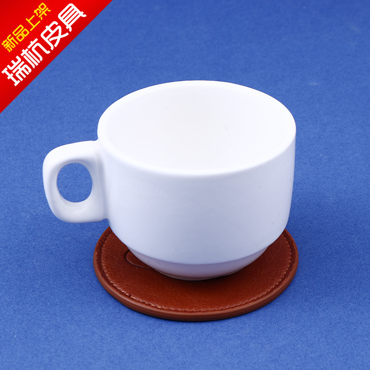 친환경 PU 컵받침, 방수 및 내열 식탁매트, 유럽 및 미국 스타일의 심플한 원형 미끄럼 방지 두꺼운 단열 매트, 고온에 강한 가정용 가죽 매트