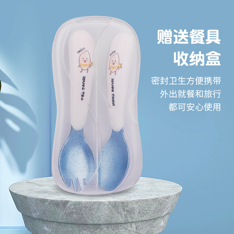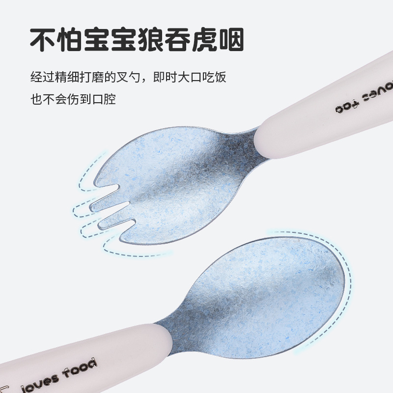 어린이와 아기가 먹는 법을 배우고 훈련할 수 있는 순수 티타늄 식기 세트, 아기 식품 보충 포크와 스푼, 식품 등급