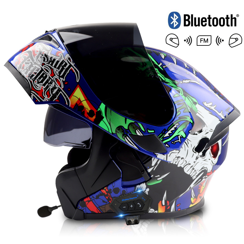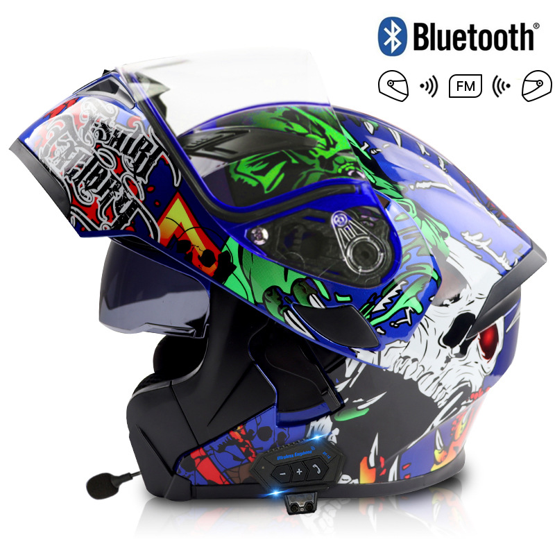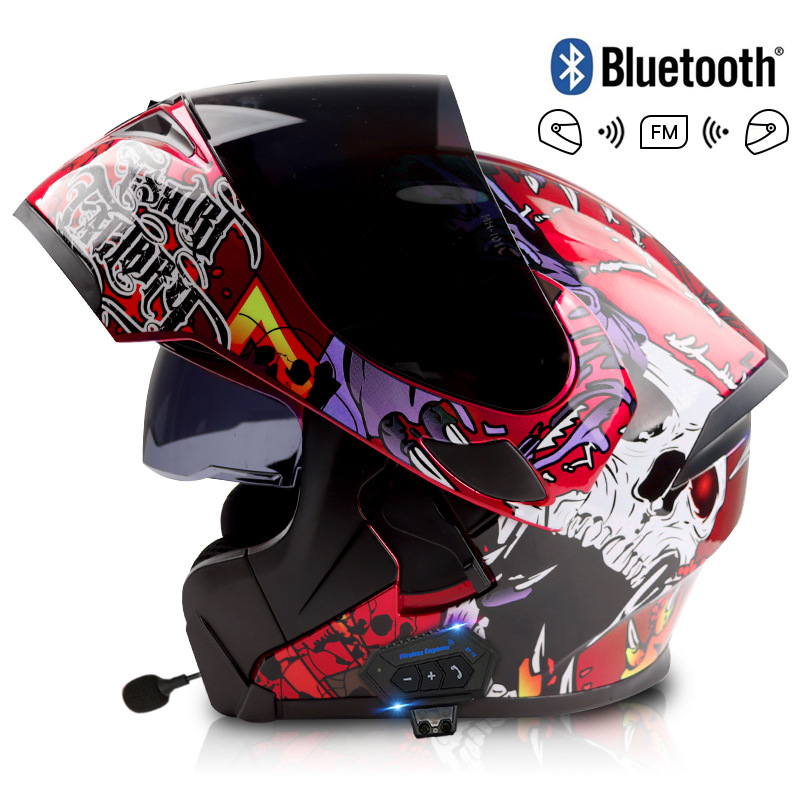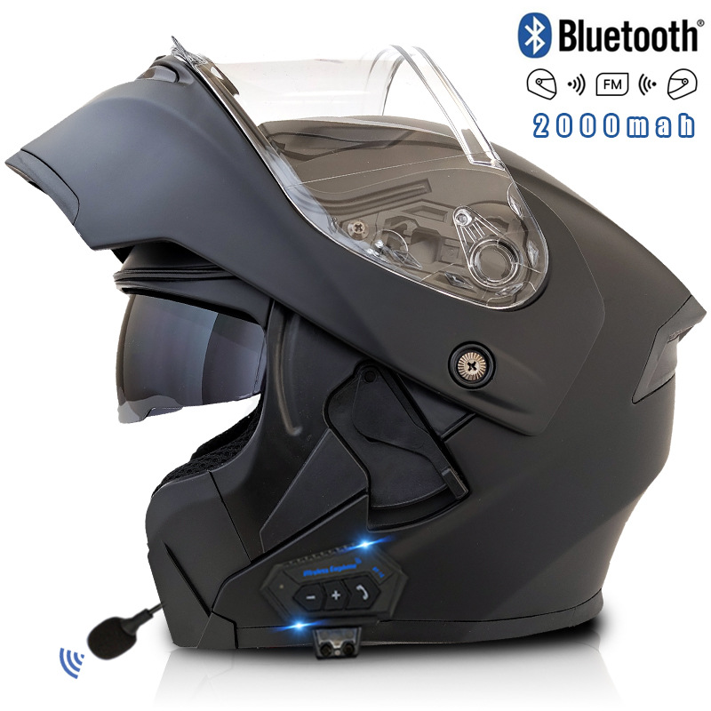 대형 배터리 2000mAh 블루투스 인터콤 전기 오토바이 헬멧 남성과 여성의 플러스 사이즈 전체 헬멧 더블 미러 공개