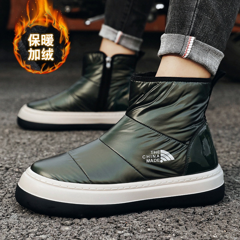 2021 겨울 새로운 기모 두꺼운 따뜻한 야외 스노우 부츠 가죽 방수 유행 경량 발 면화 신발 남성용