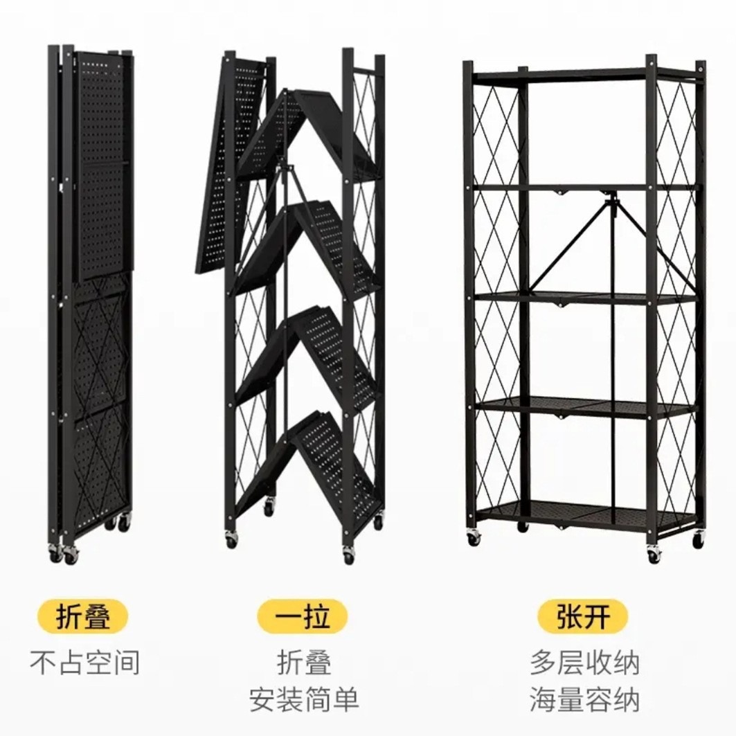 厨房置物架 落地免安装折叠移动多层货架加厚储物架卧室收纳架子