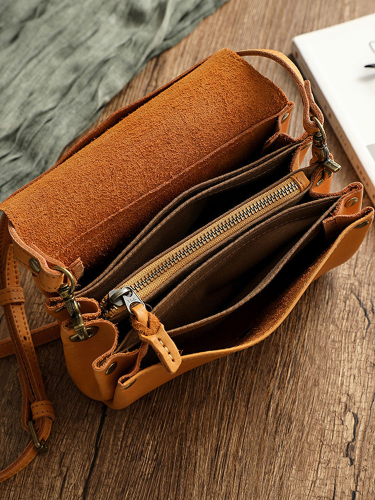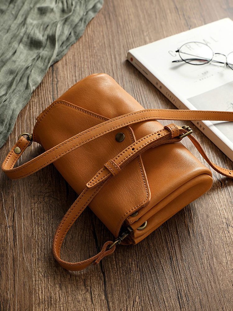 2021 가을 탑 레이어 소가죽 수제 가방 염료와 왁스 칠 가죽 여성용 정품 가죽 오르간 백 크로스 바디 백 21026