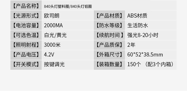 840 플라스틱 링 화이트 라이트