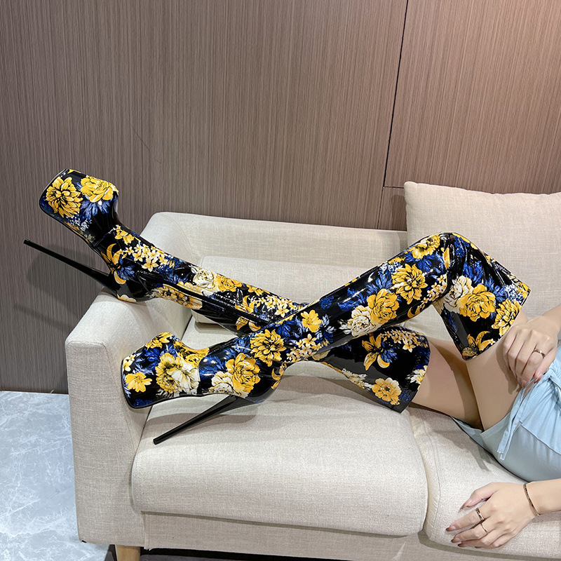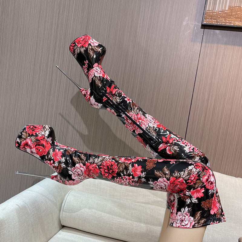 此款高筒豹纹弹力靴属于特殊订制,不支持退换,亲们考虑清楚下单。钢细跟订做22厘米跟高 30厘米跟高 价格不同 全黑跟可以订做22厘米跟高