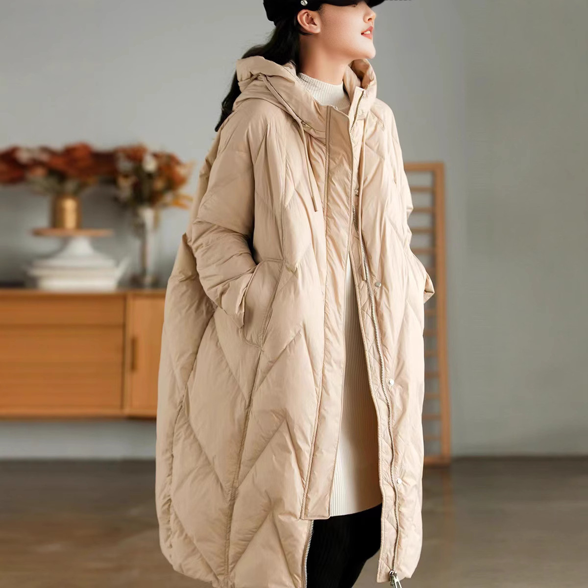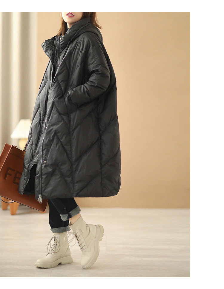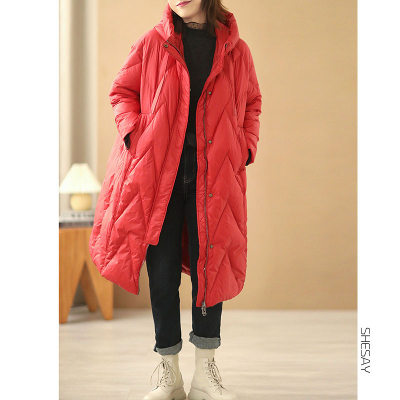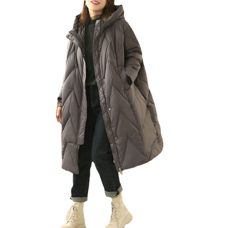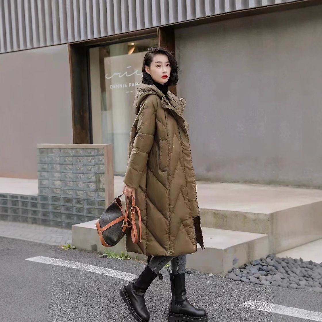 겨울 새로운 브랜드 디자인 니하이 롱 햇 두꺼운 캐주얼 느슨한 화이트 덕 다운 재킷 여성용 90 벨벳