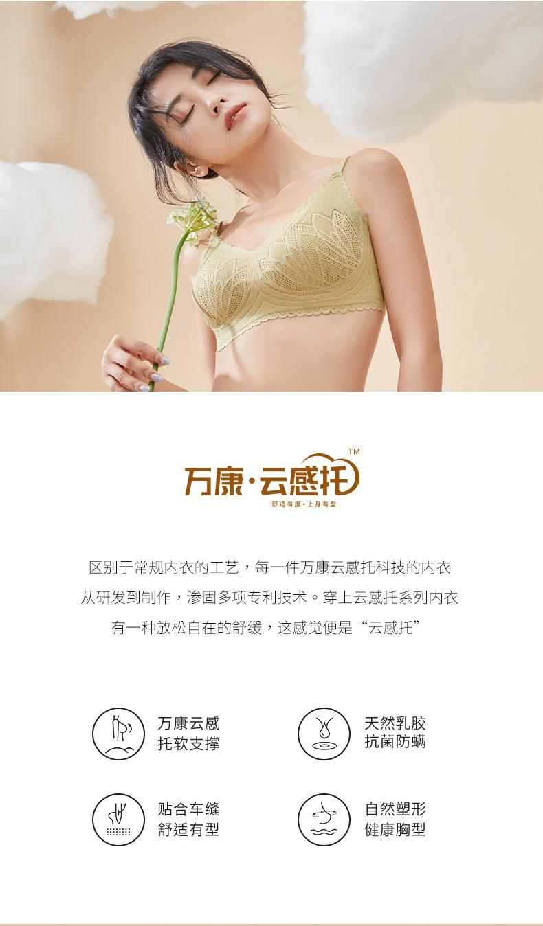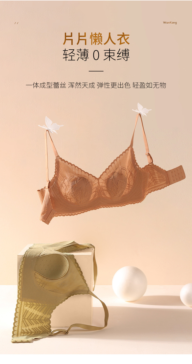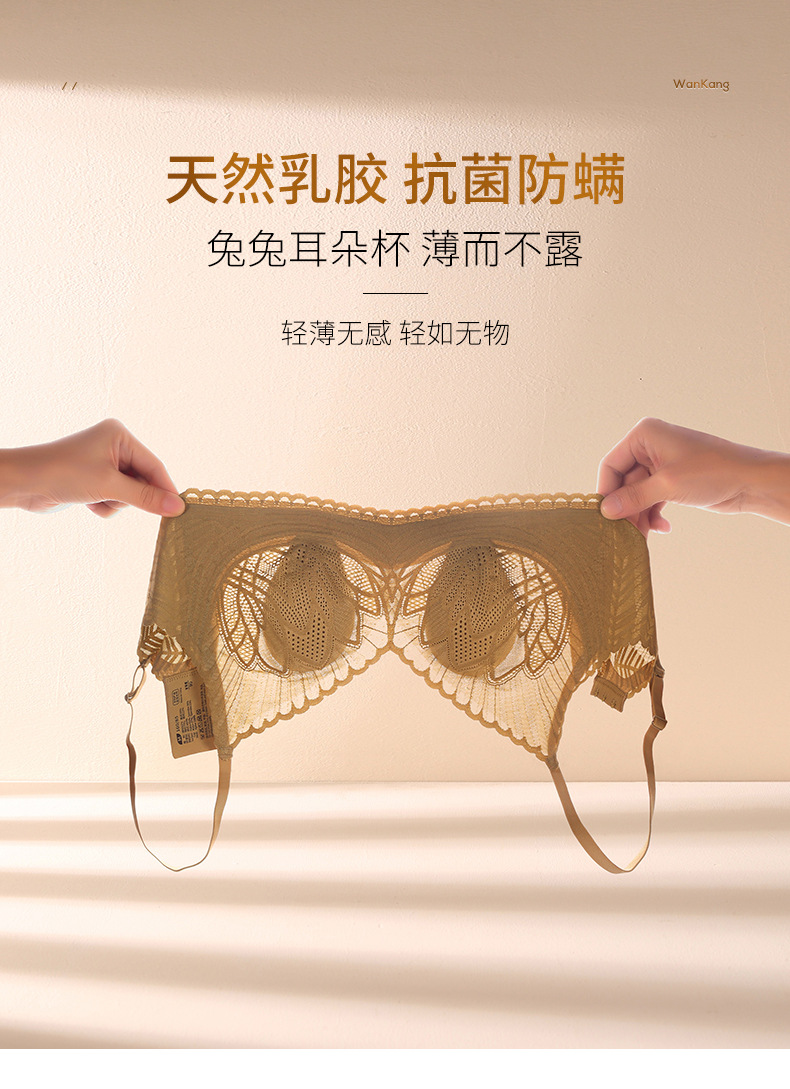 透气蕾丝兔耳杯乳胶防螨抑菌片裁调整型无痕内衣无感通勤文胸秋季