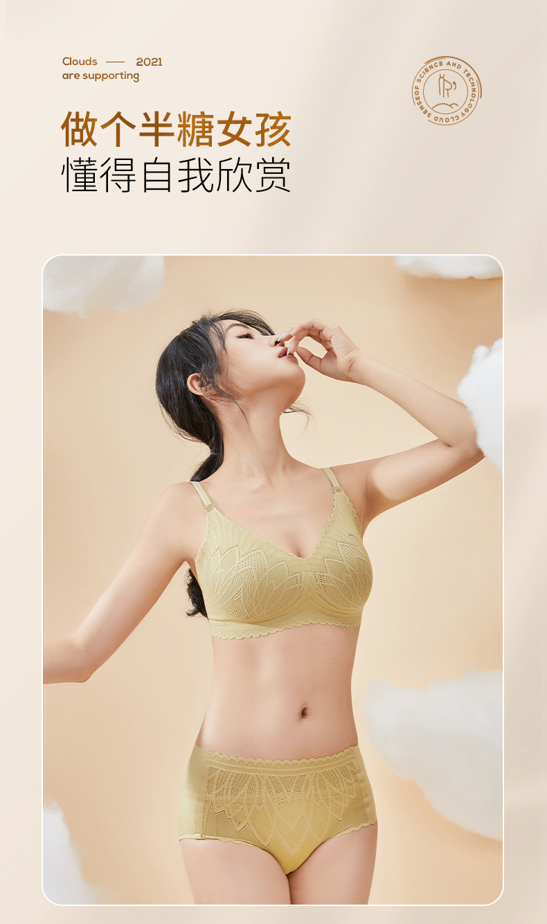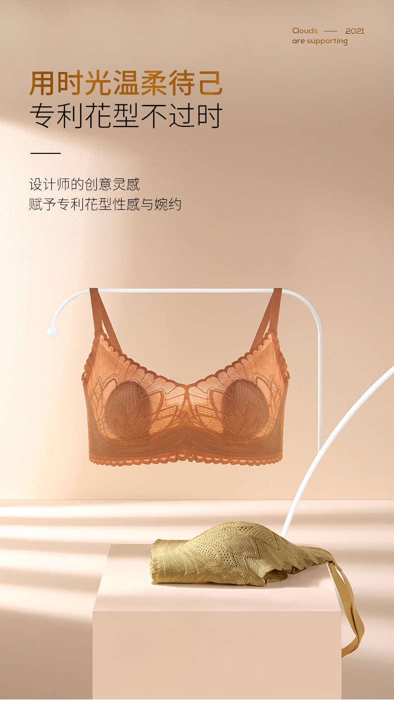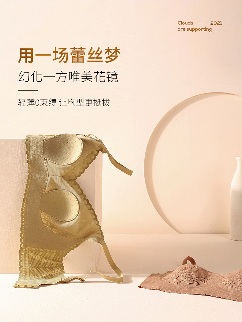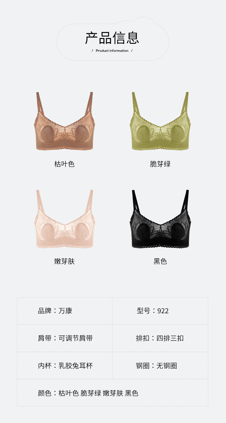 透气蕾丝兔耳杯乳胶防螨抑菌片裁调整型无痕内衣无感通勤文胸秋季
