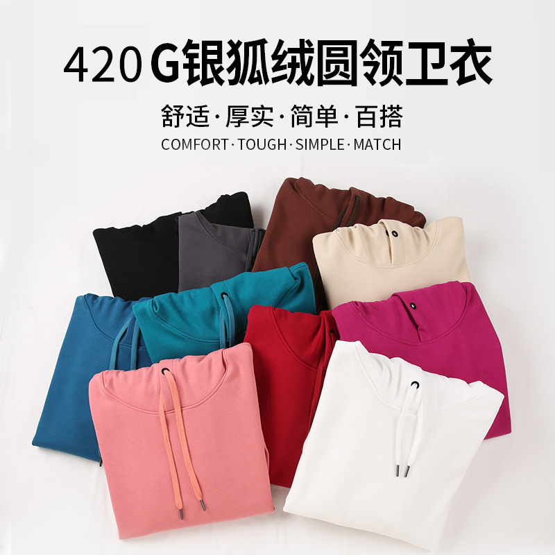 420g 실버 폭스 벨벳 기모 두꺼운 특대 후드 스웨터 남자의 미국 느슨한 어깨 단색 커플 스웨터