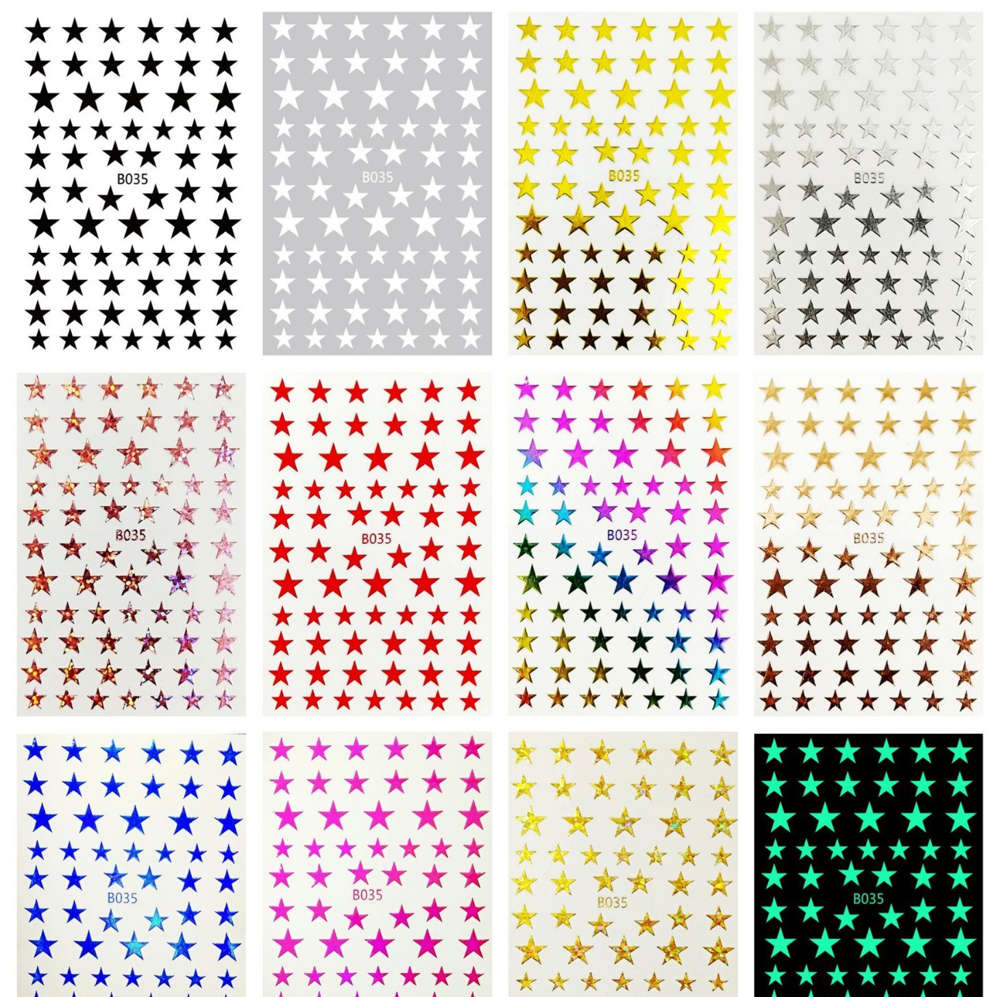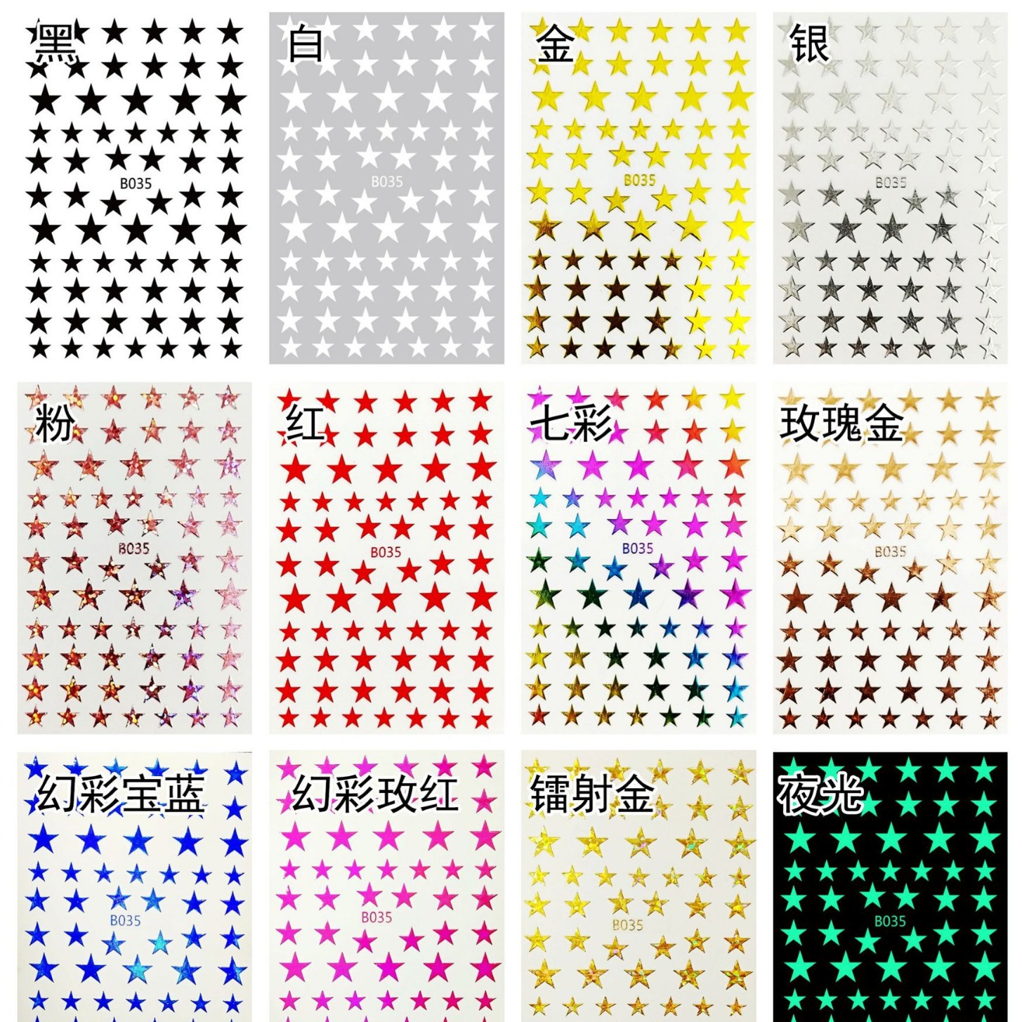 B035 크로스 보더 공급 스타 네일 네일 네일 스티커 다섯개 별 12 포장 할 수 있습니다 세트