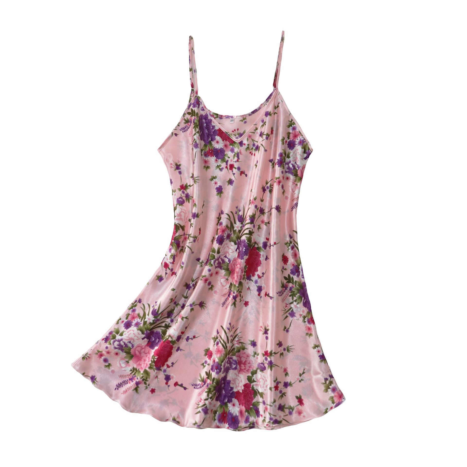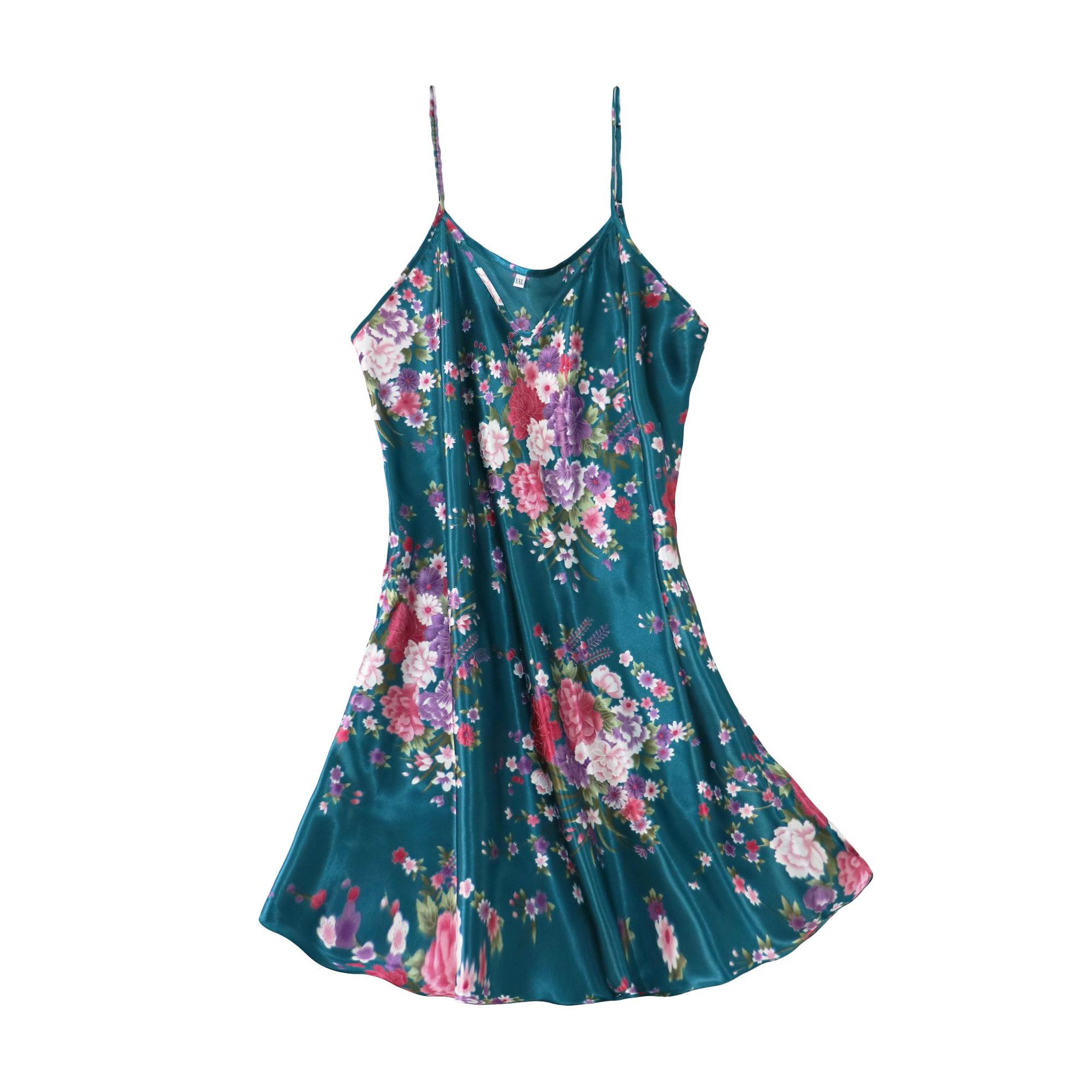 크로스 보더 새로운 잠옷 여성용 여름 얇은 인공 실크 잠옷 깊은 V 섹시한 수선화 인쇄 짧은 멜빵