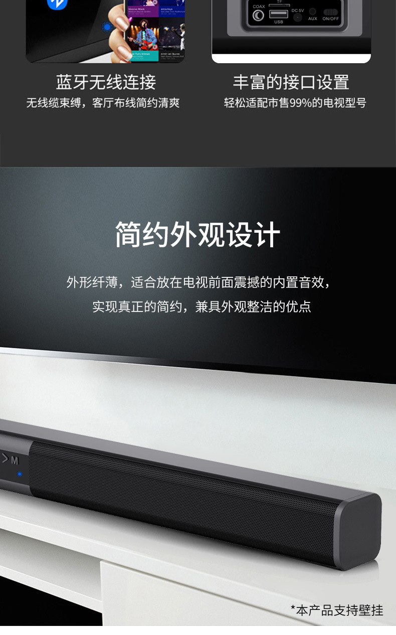 새로운 초장거리 에코 월 사운드 바 사운드 바 긴 TV 스피커 무선 홈 시어터 데스크탑 스피커