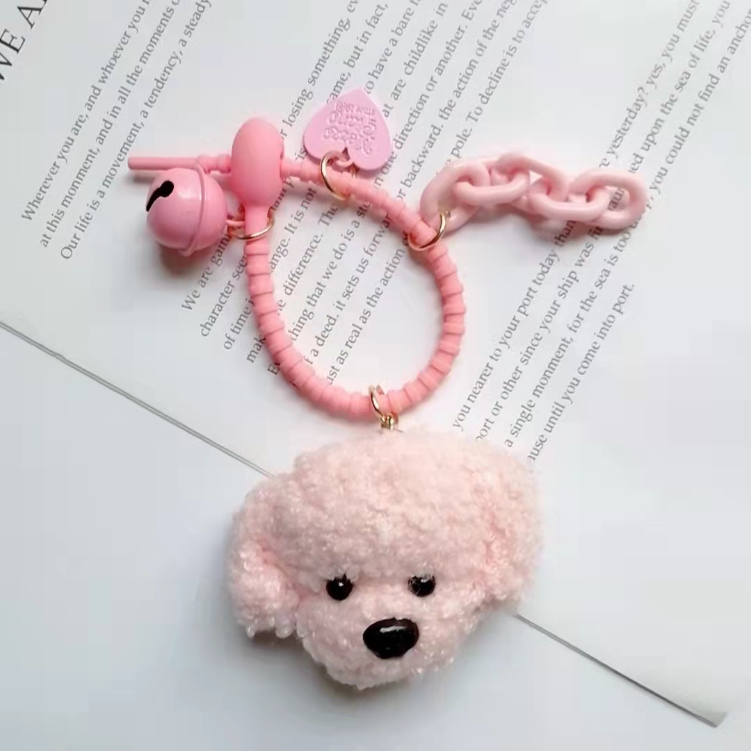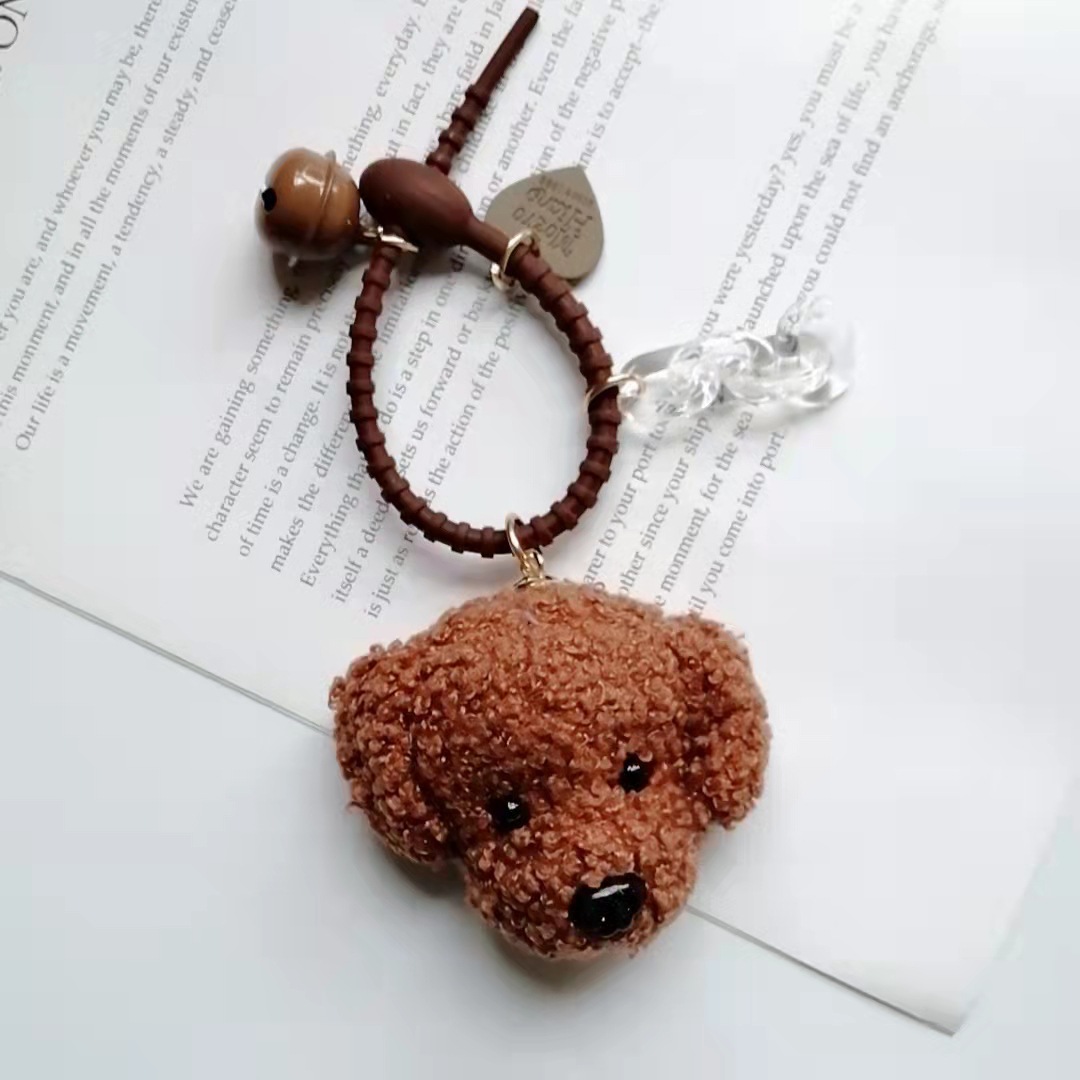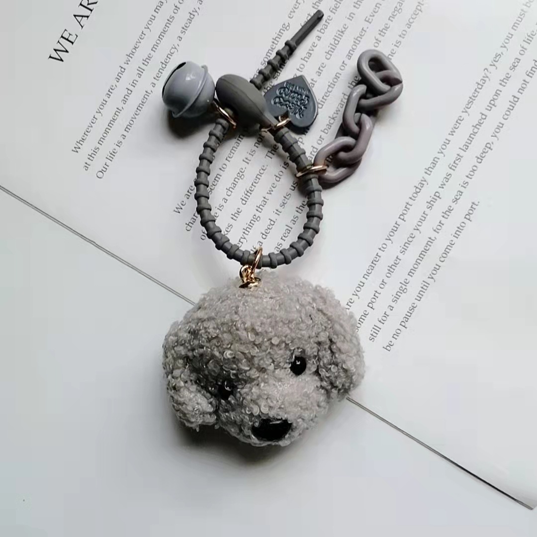 빈티지 곱슬 개 사랑 벨 액세서리 가방 매달려 장식품 봉제 재료 강아지 머리 창조적 인 전화 케이스 교수형 장식품