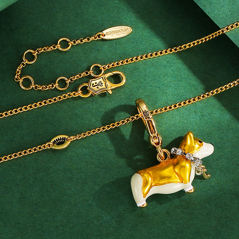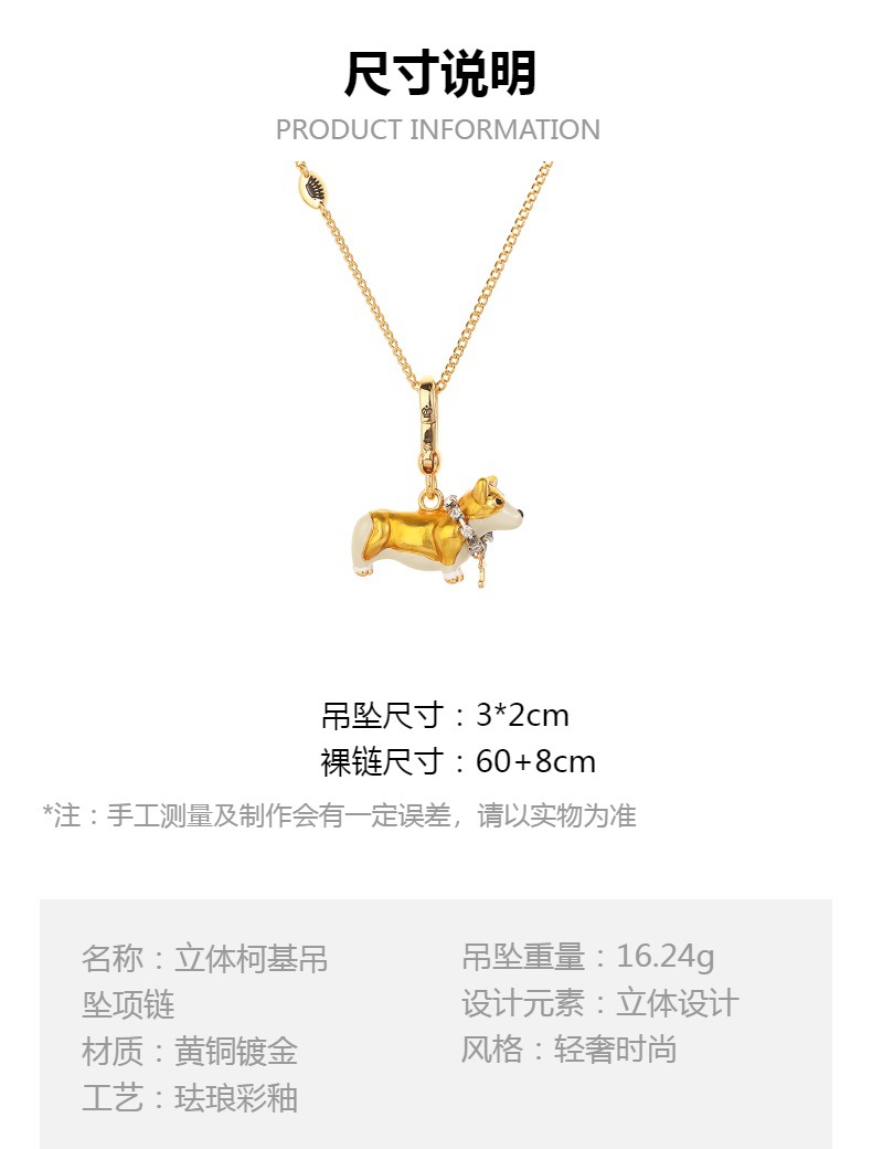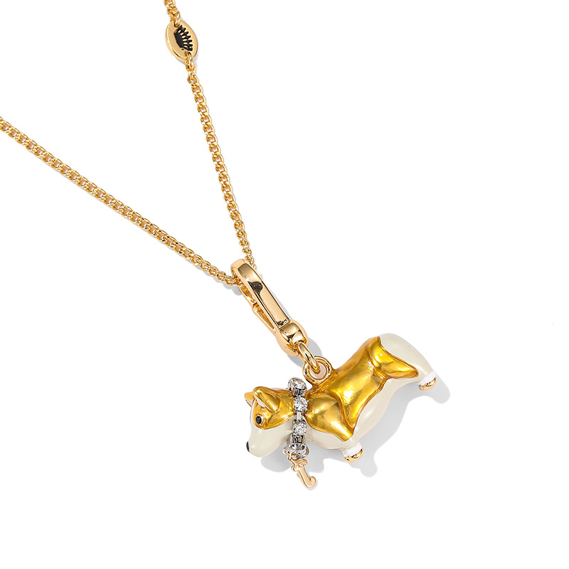 청도 국경 간 대외 무역 보석 에나멜 유약 노란색 강아지 펜던트 패션 귀여운 코기 펜던트 목걸이 조수