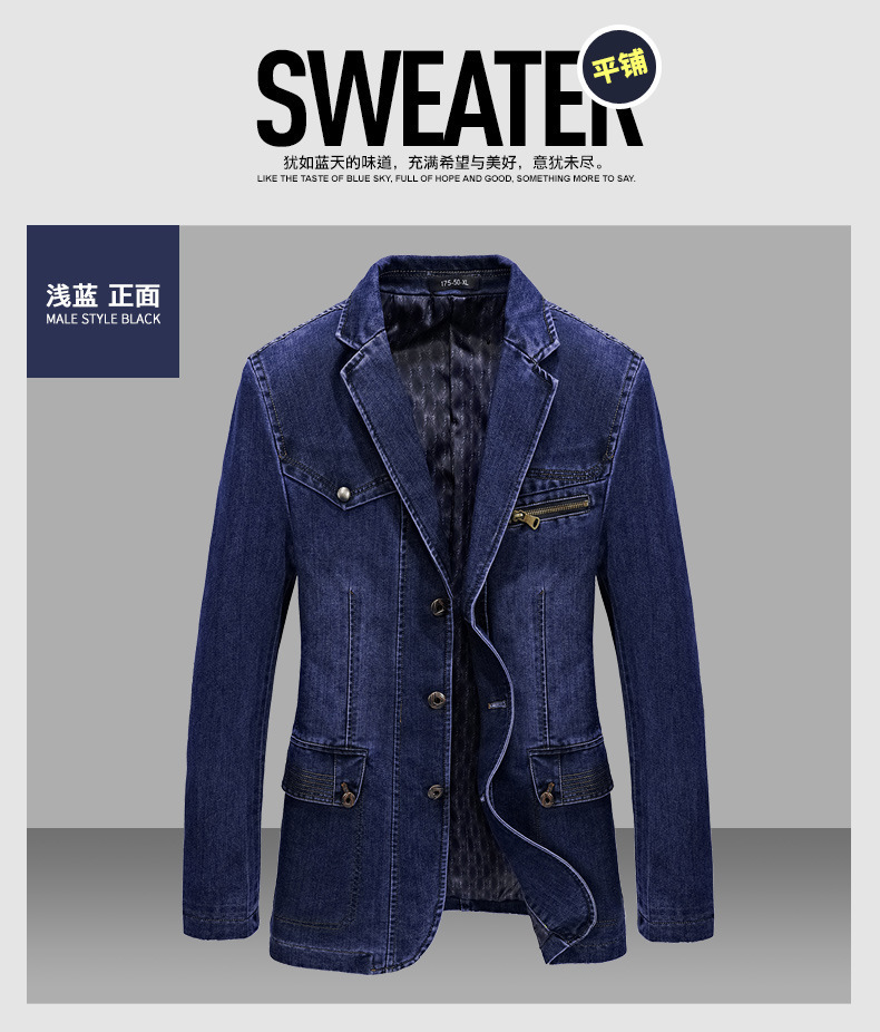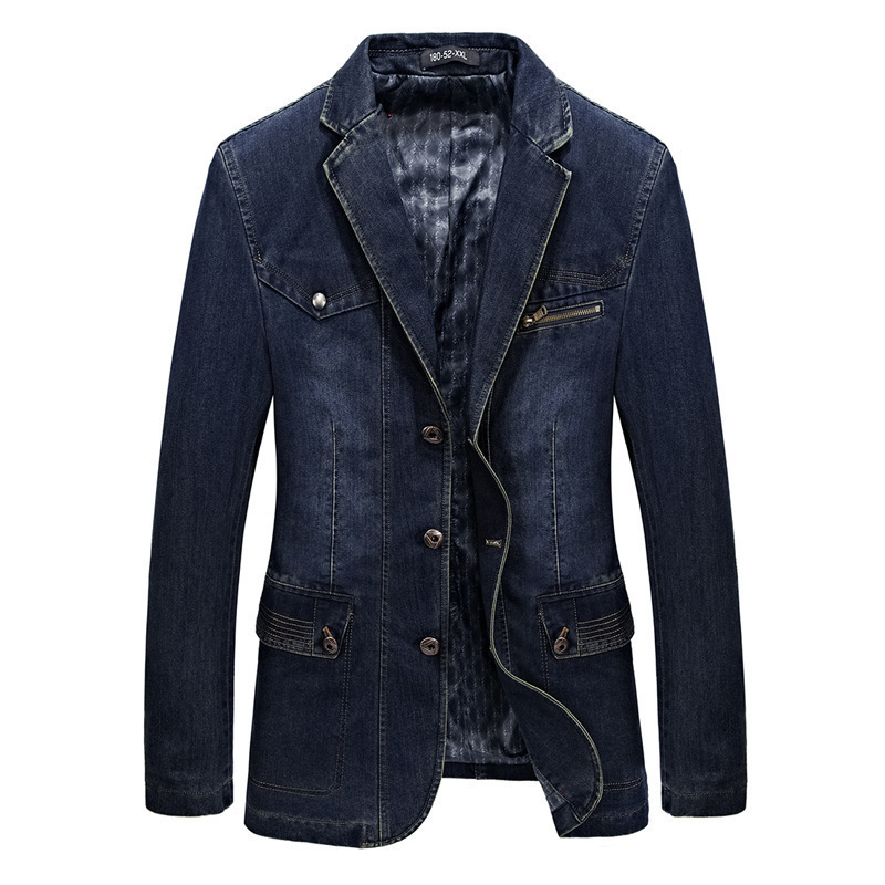 厂家货源休闲男士牛仔西装大码复古便服小西装8805