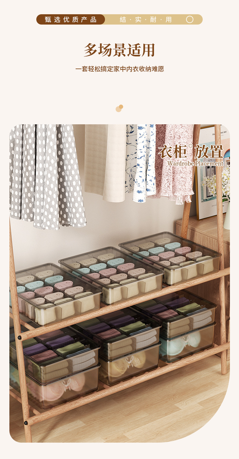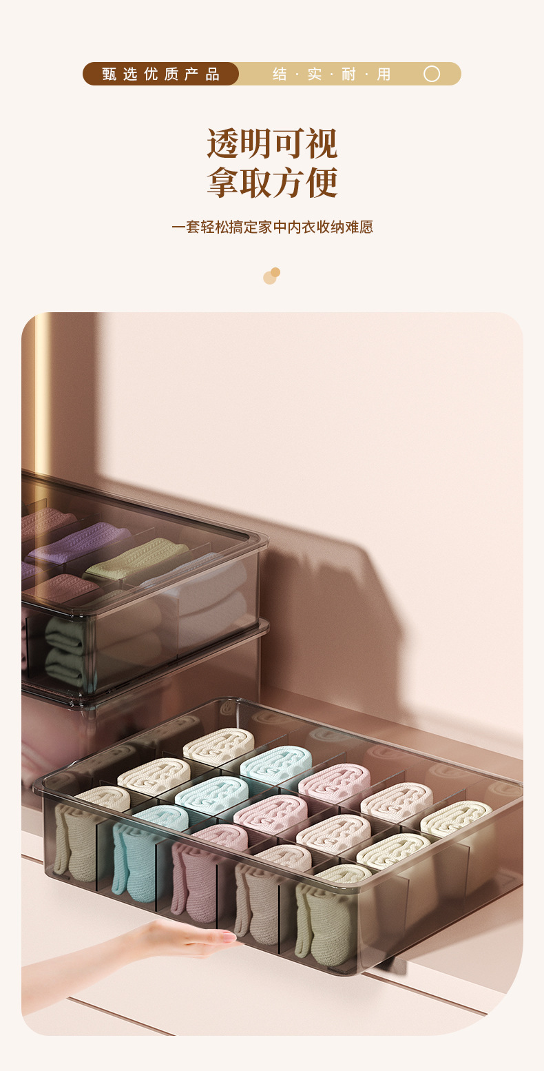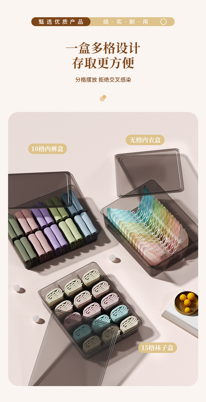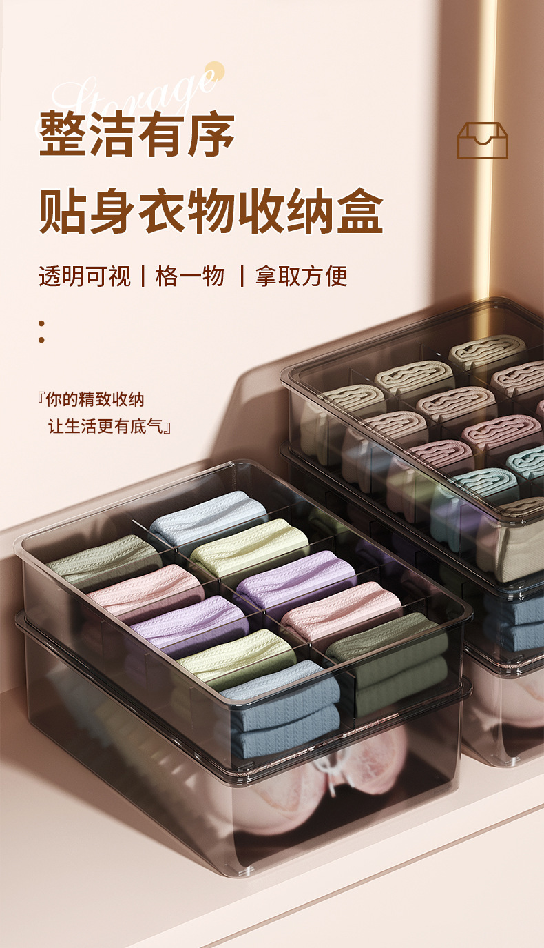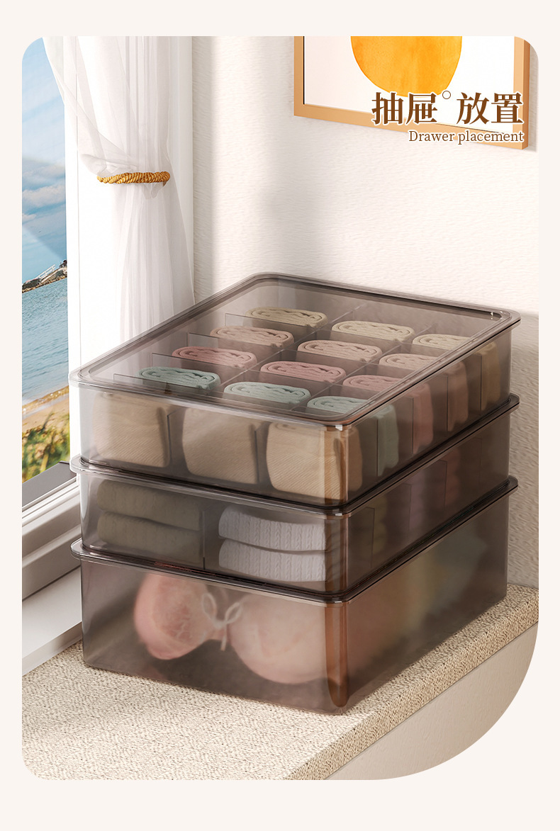뚜껑이없는 새로운 [10 그리드 속옷 상자]-투명 블랙