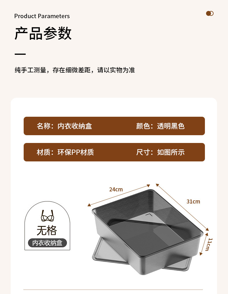 새로운 [브라 스토리지 박스] 커버 없음-블랙