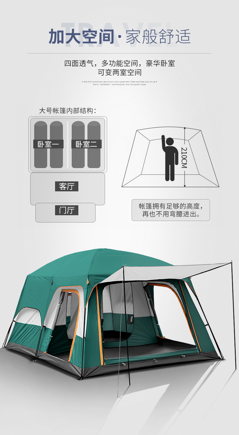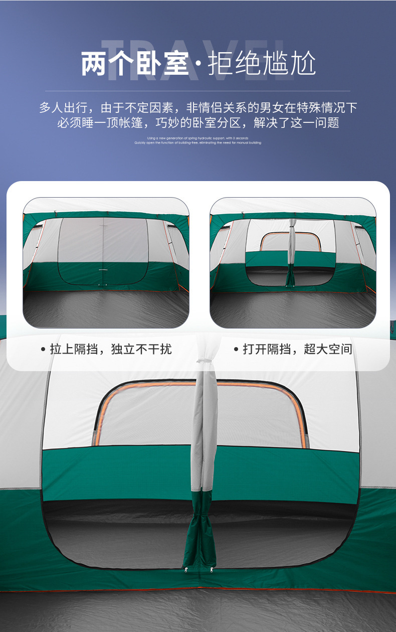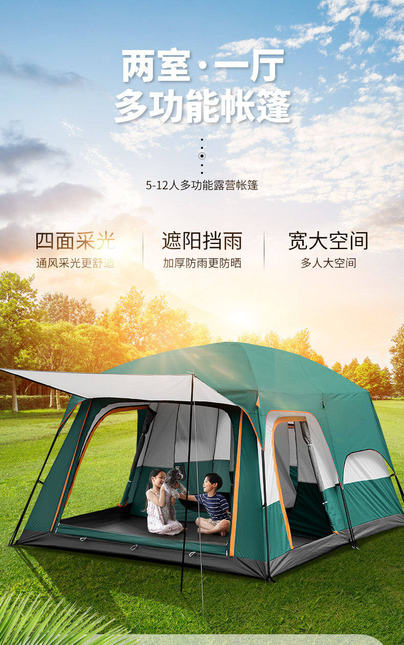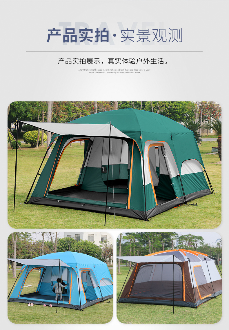 크로스 보더 야외 텐트 캠핑 2 베드룸 1 홀 가족 셋업 대형 텐트 캠핑 거즈 2 층 텐트 휴대용