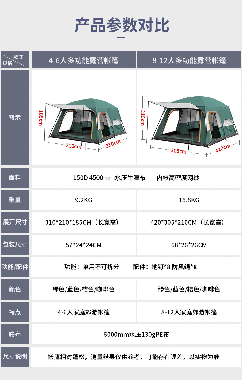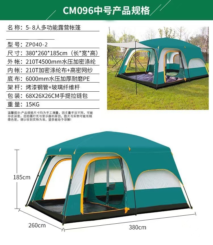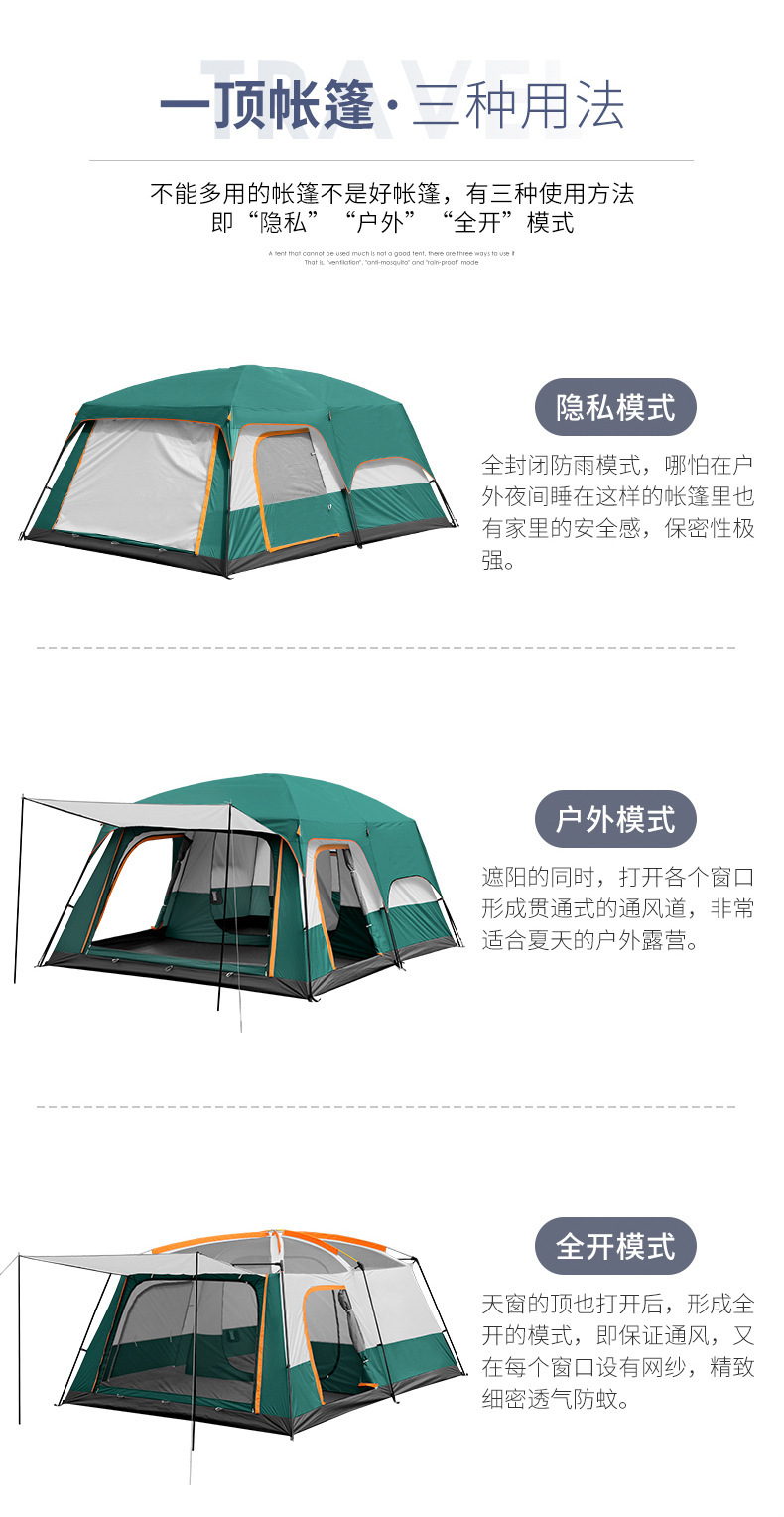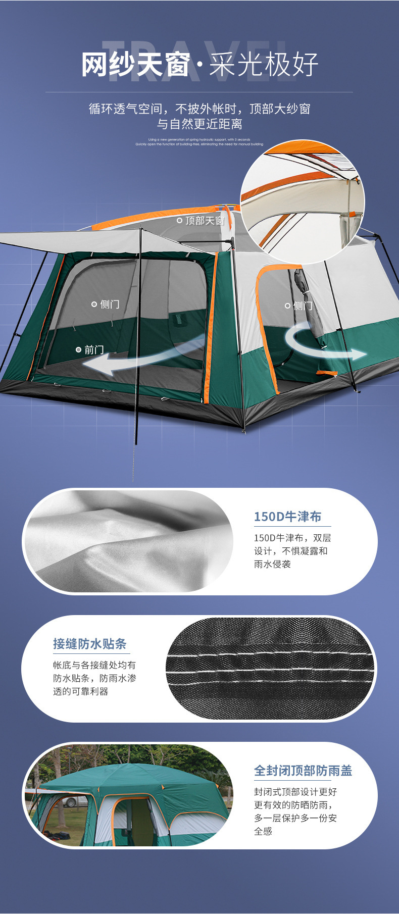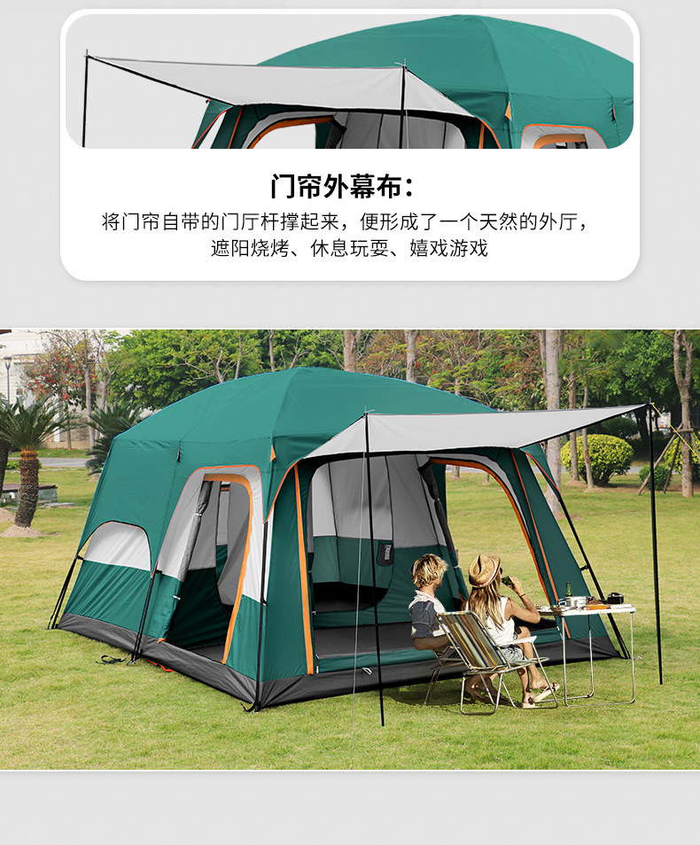 크로스 보더 야외 텐트 캠핑 2 베드룸 1 홀 가족 셋업 대형 텐트 캠핑 거즈 2 층 텐트 휴대용