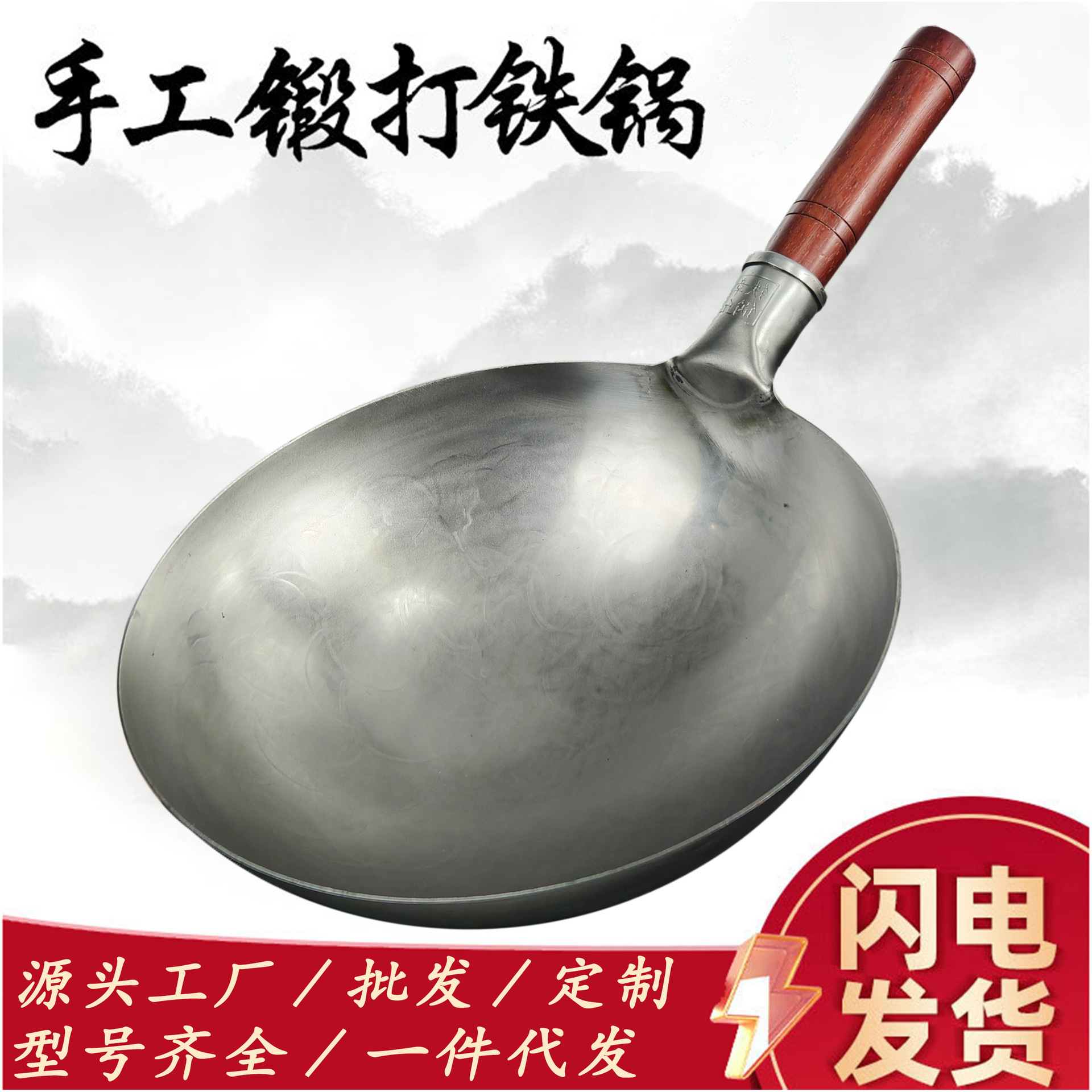 공장 직접 공급 Zhangqiu 철 냄비 가정용 코팅되지 않은 스틱 냄비 전통 구식 철 냄비 손 단조 순수 철 냄비