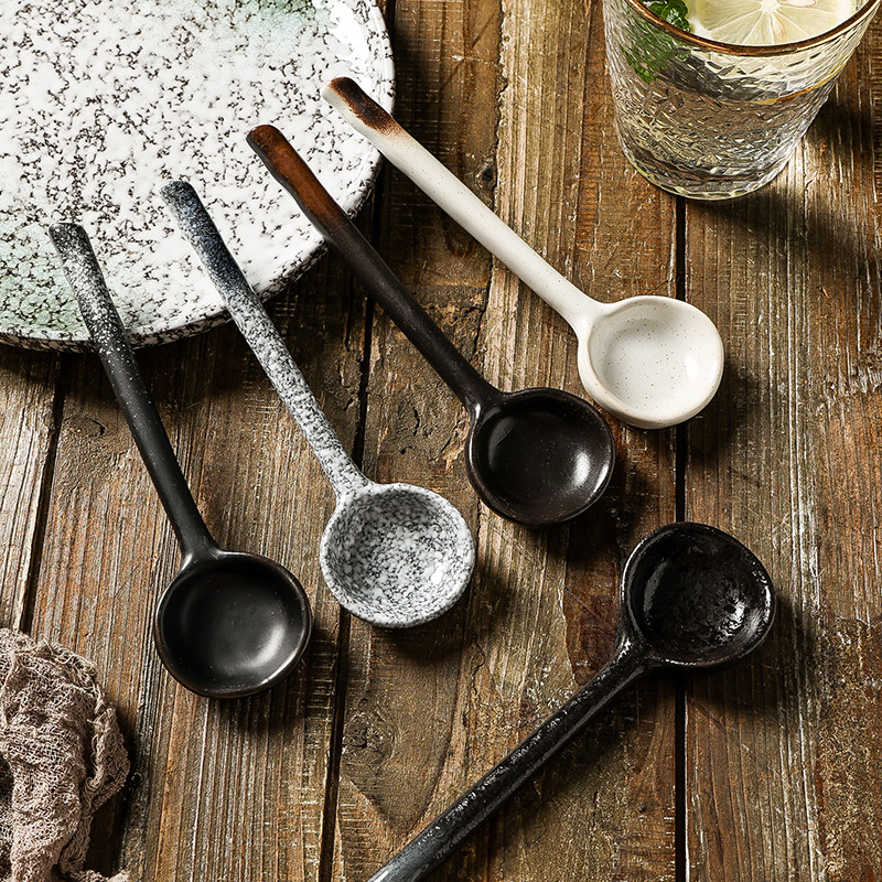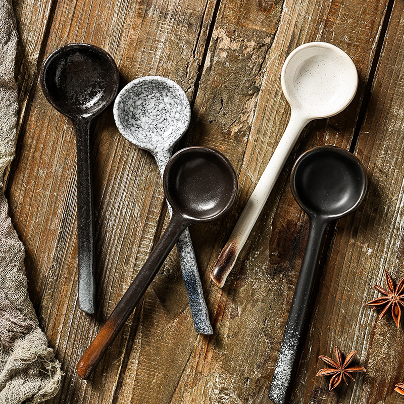 공장 도매 가정용 세라믹 스푼 작은 스푼 긴 손잡이 스프 마시는 스푼 창조적 인 일본 스푼 작은 스푼